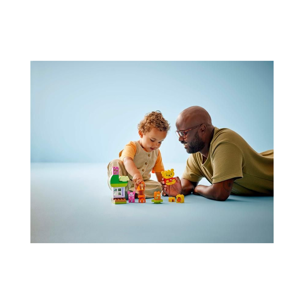 - 3 összerakható LEGO® DUPLO® állatmodell – Tartalmazza a közkedvelt LEGO DUPLO Disney szereplők minifiguráit: Micimackót, Tigrist és Malacot, ajándékokat és egy faházat, amely szórakoztató és kreatív játékra ösztönöz