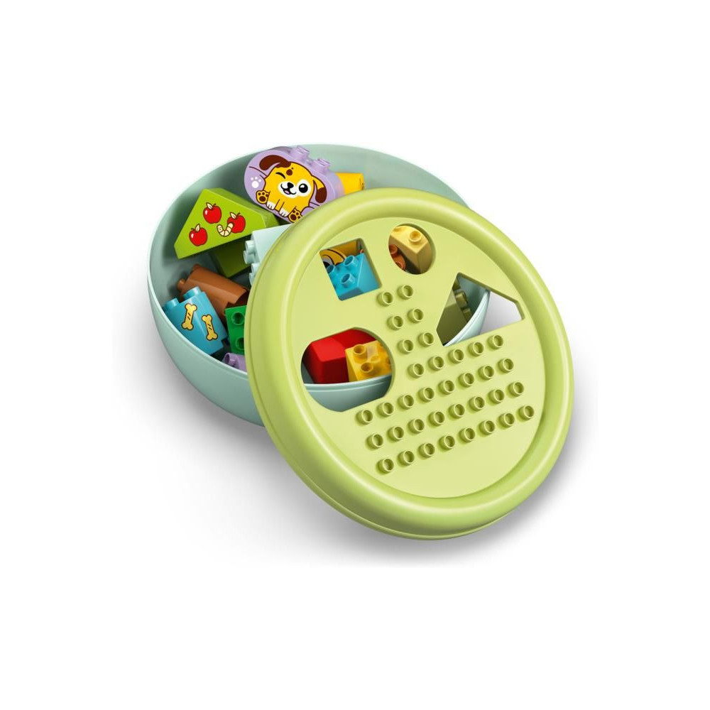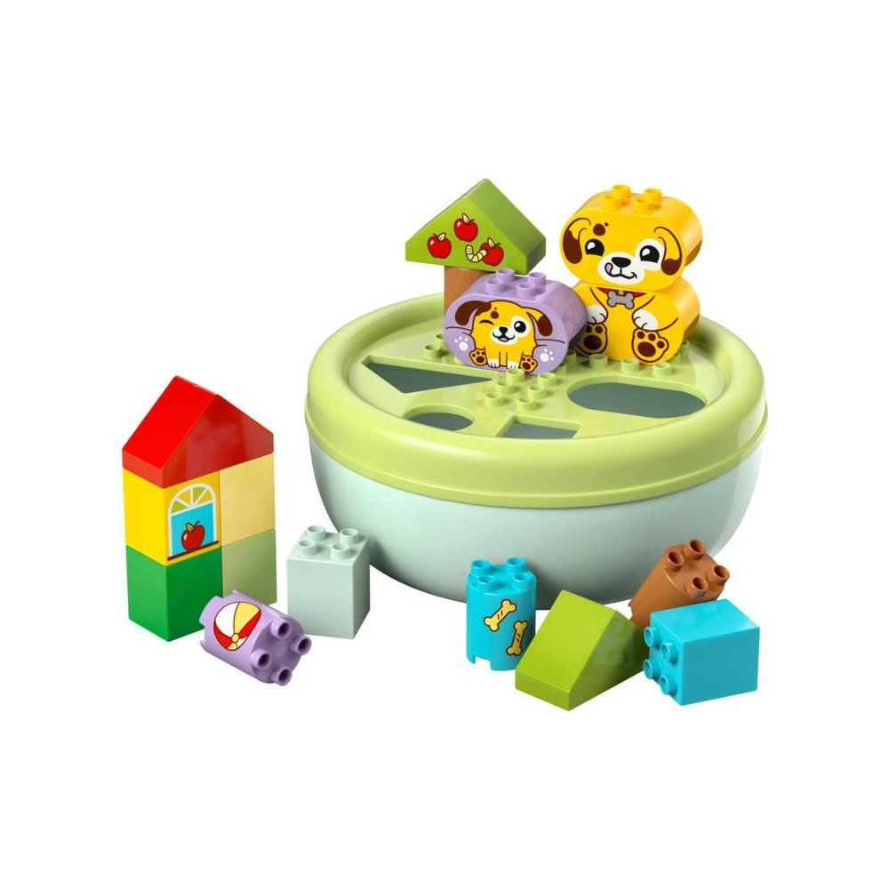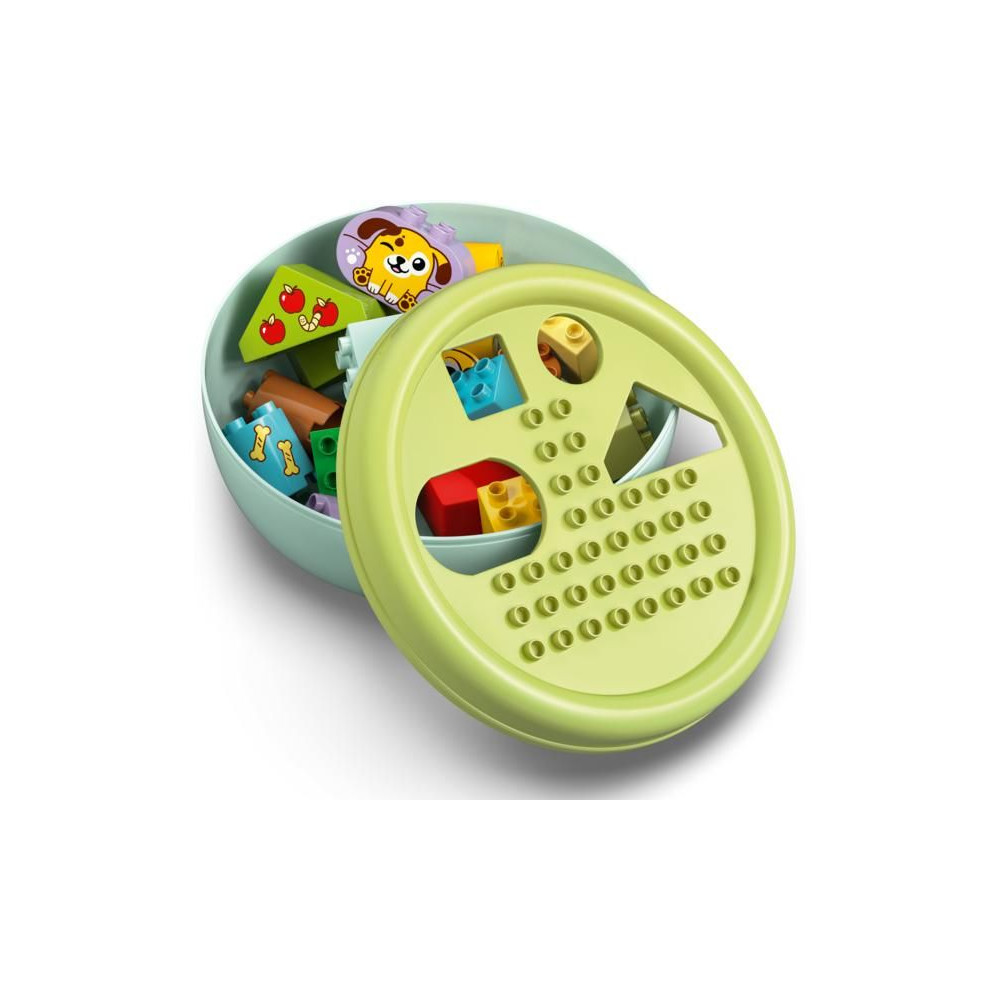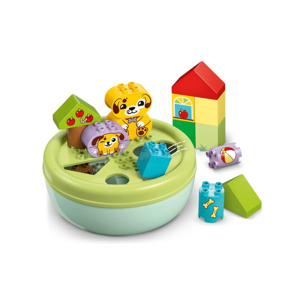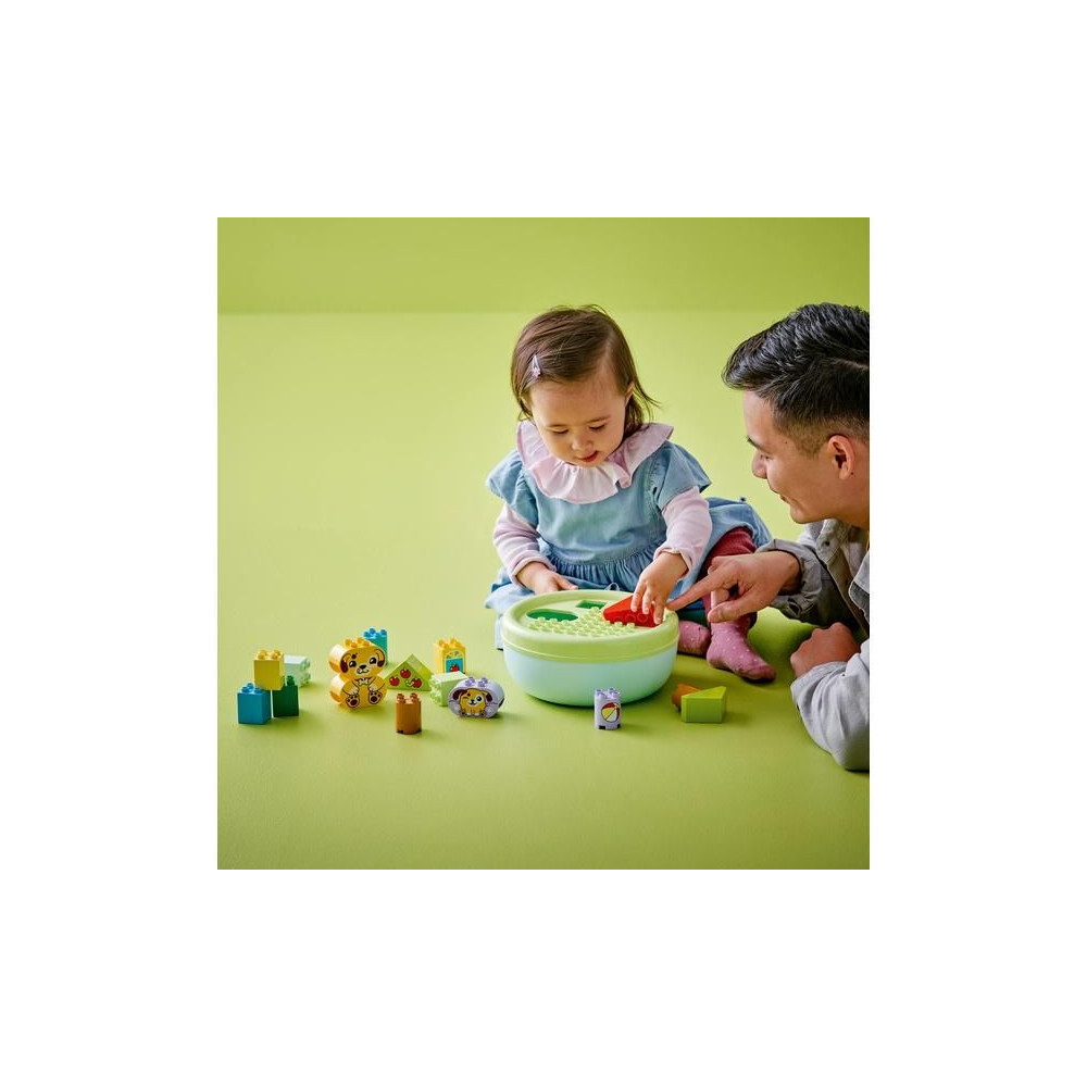 Ez a kisgyermekeknek szóló ajándék segít fejleszteni a térbeli érzéket, és tele van szórakoztató, oktató jellegű tevékenységekkel az egész család számára. A szülők megmutathatják a gyerekeknek a csomagban található összes formát, amelyeket a kis építők felhasználhatnak fák, kutyafigurák és akár egy ház építésére is. Ezután kreatív játékban lehet részük az aranyos LEGO® DUPLO® kutyákkal, labdát dobálhatnak nekik és csontokat etethetnek velük.