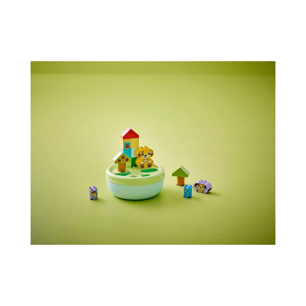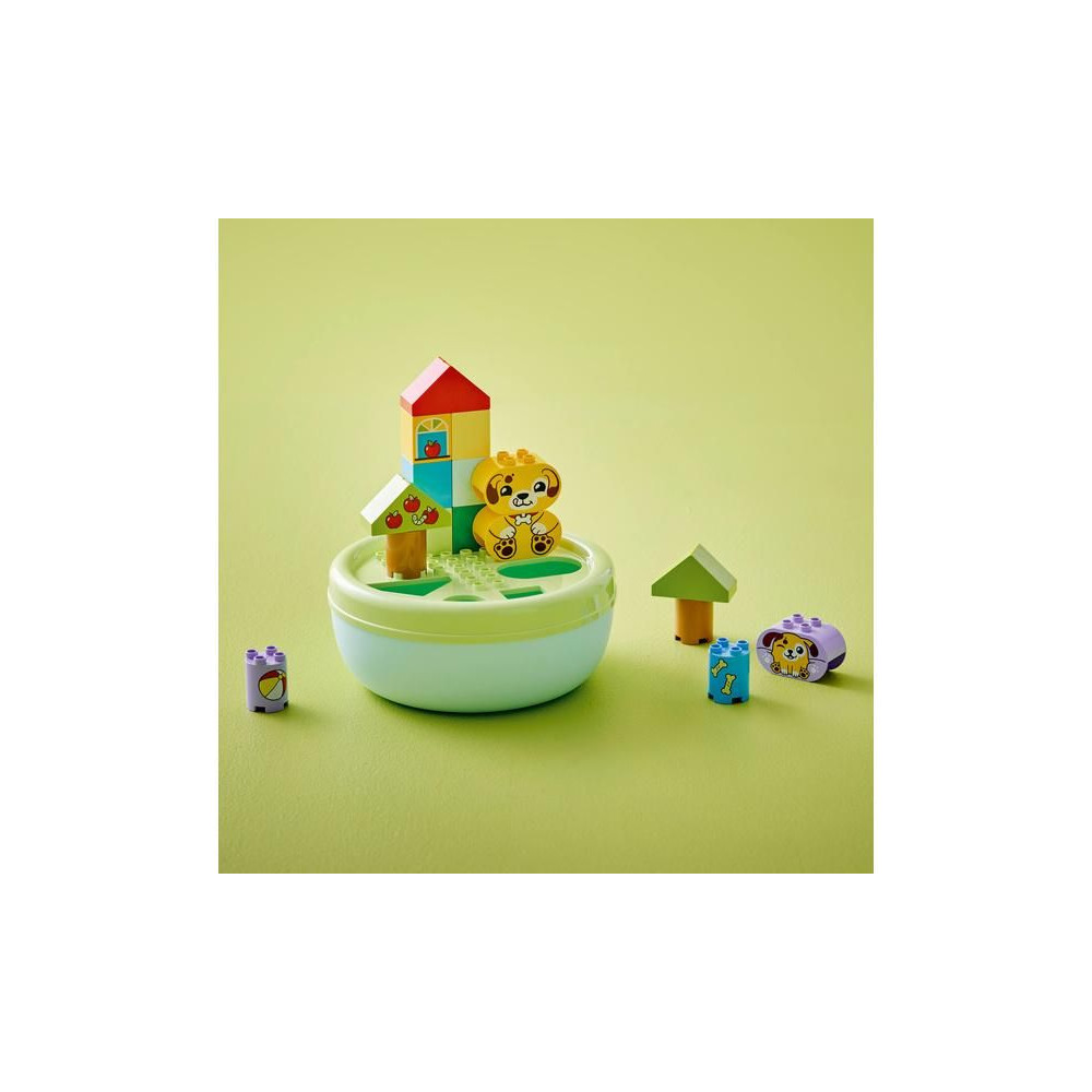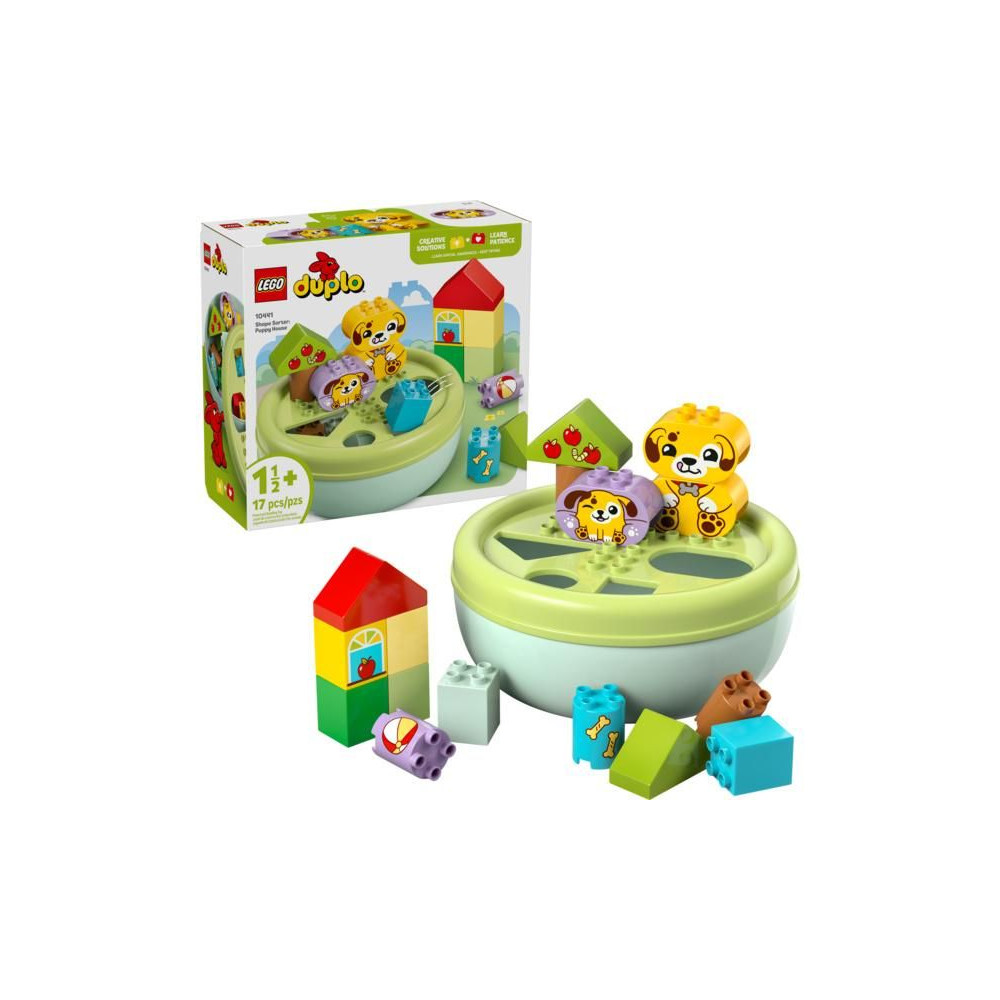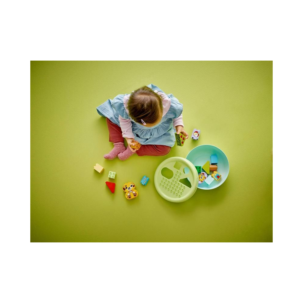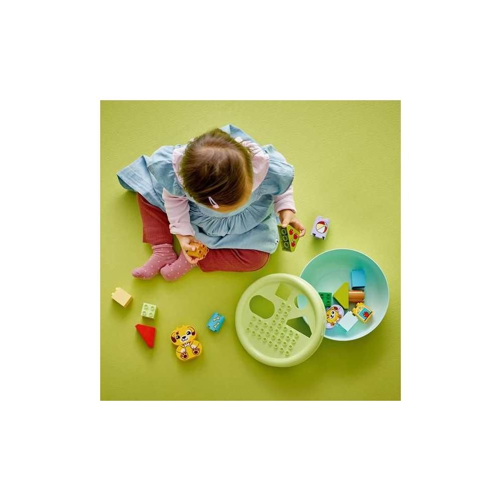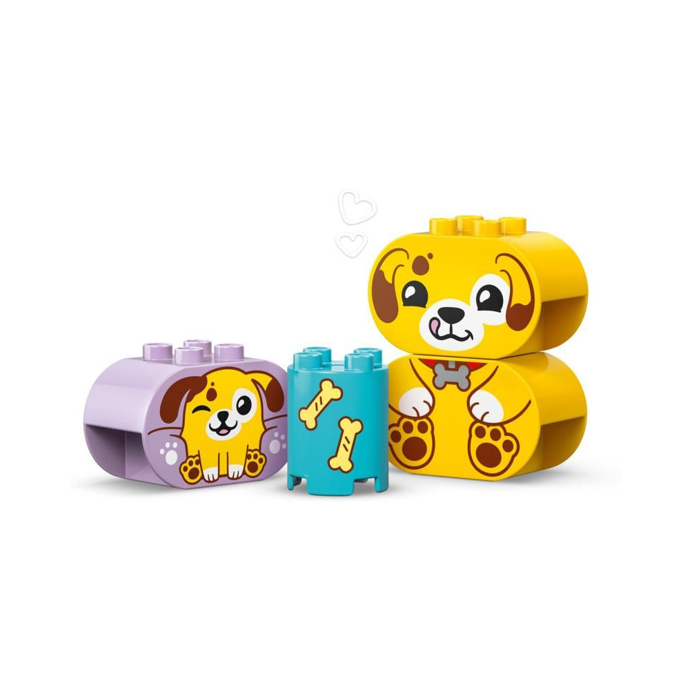 Ez a kisgyermekeknek szóló ajándék segít fejleszteni a térbeli érzéket, és tele van szórakoztató, oktató jellegű tevékenységekkel az egész család számára. A szülők megmutathatják a gyerekeknek a csomagban található összes formát, amelyeket a kis építők felhasználhatnak fák, kutyafigurák és akár egy ház építésére is. Ezután kreatív játékban lehet részük az aranyos LEGO® DUPLO® kutyákkal, labdát dobálhatnak nekik és csontokat etethetnek velük.