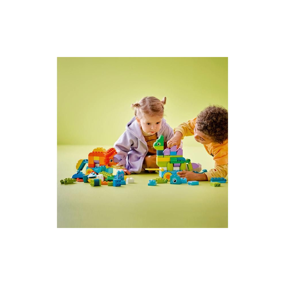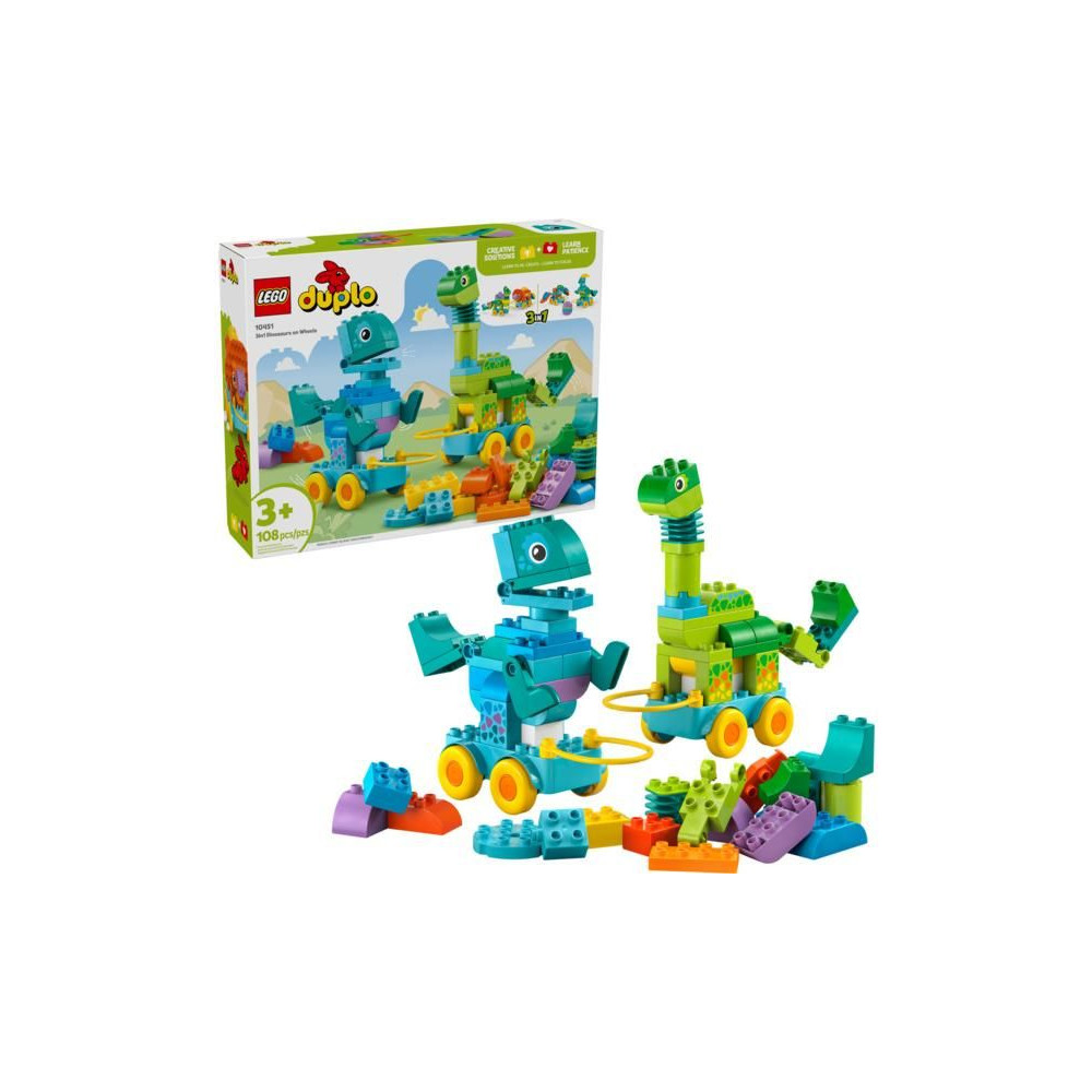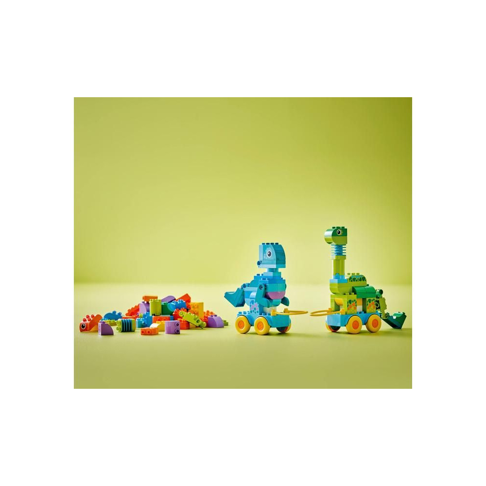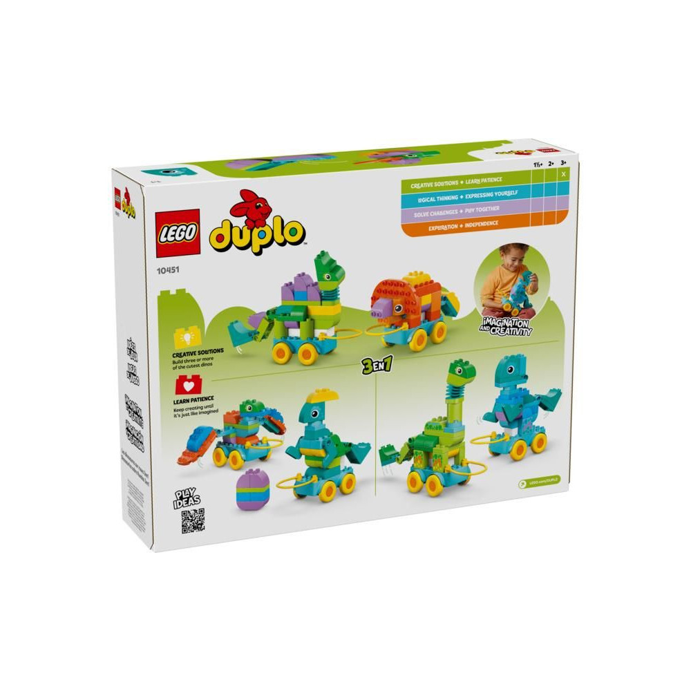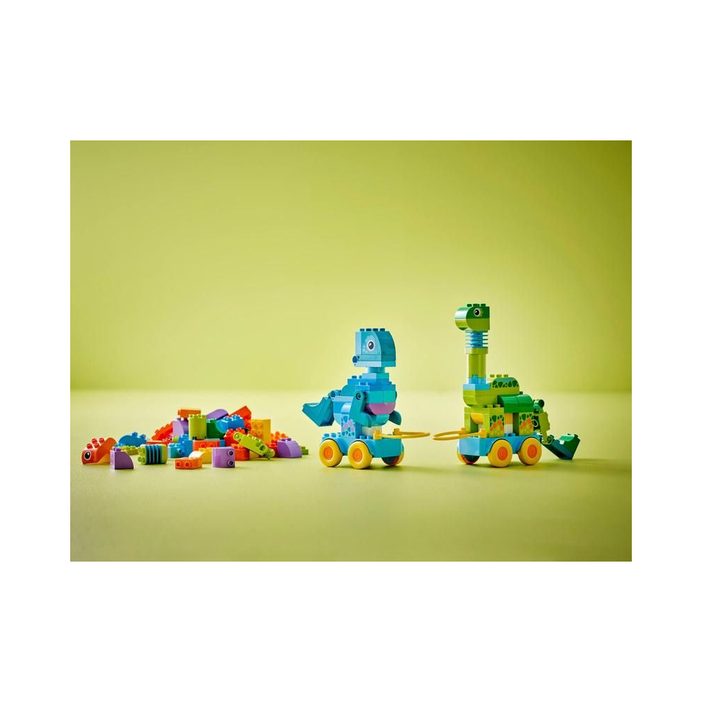 - Órákig tartó kreatív játék kisgyermekeknek – Lepd meg a gyerekeket élénk színekkel és végtelen kreativitással teli oktatójátékokkal a LEGO® DUPLO® City 3 az 1-ben: Dinoszauruszok kerekeken készlettel.