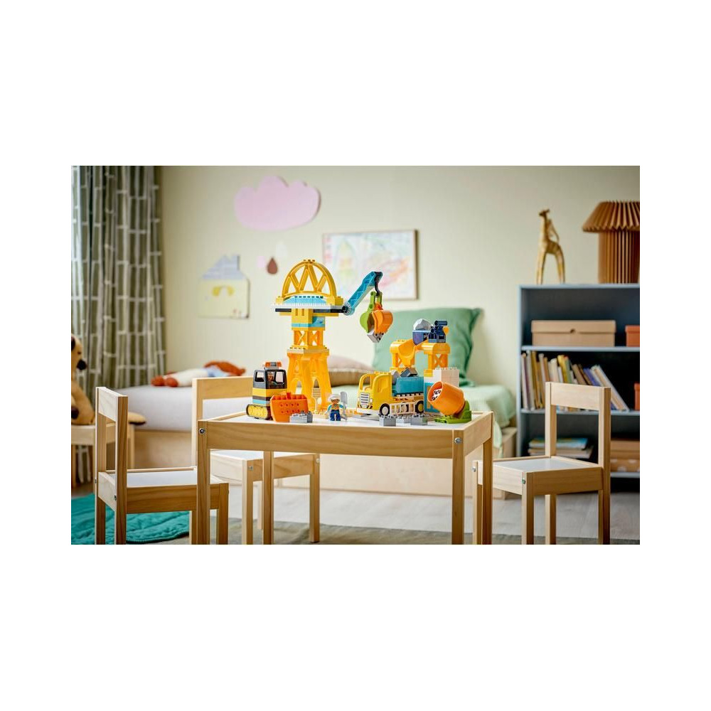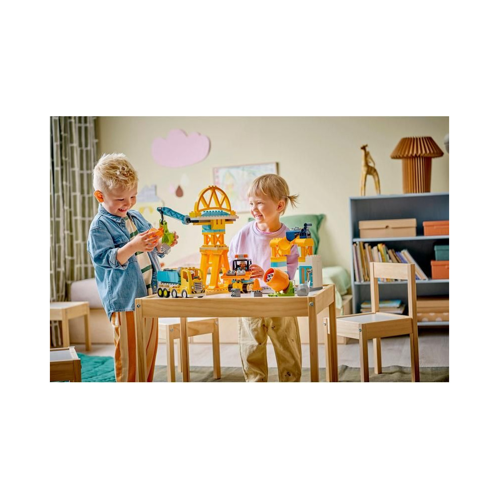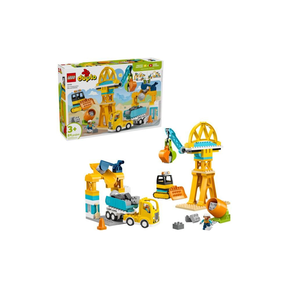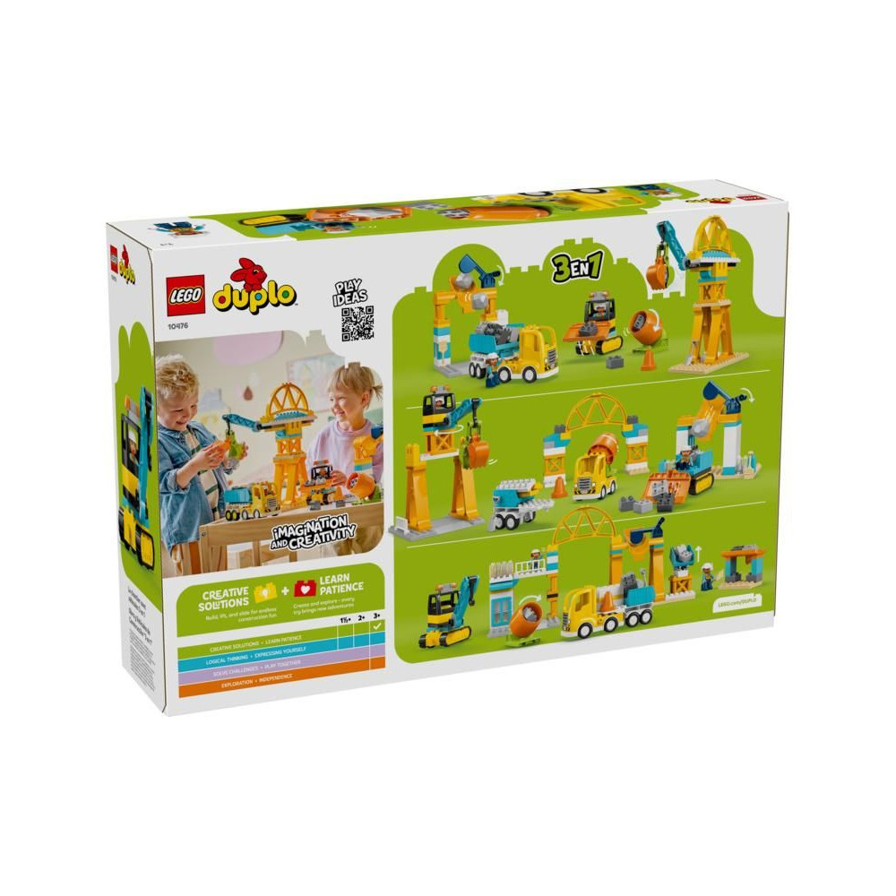 Ismertesd meg a kis építőket a 3 az 1-ben Építőterület és jármű játékkal (10476), amellyel az építés soha nem ér véget! A 3 éves vagy annál idősebb építők élvezni fogják a játékot egy forgalmas építkezésen, ahol kipróbálhatják az anyagok be- és kirakodását, valamint a kövek és téglák emelését és mozgatását a LEGO® DUPLO® építőipari járművek széles választékával. A gyerekek építhetnek emelőkosárral ellátott buldózert, dömpert, forgó dobbal ellátott betonkeverőt és mozgatható karral és nyitható markolóval ellátott darut.