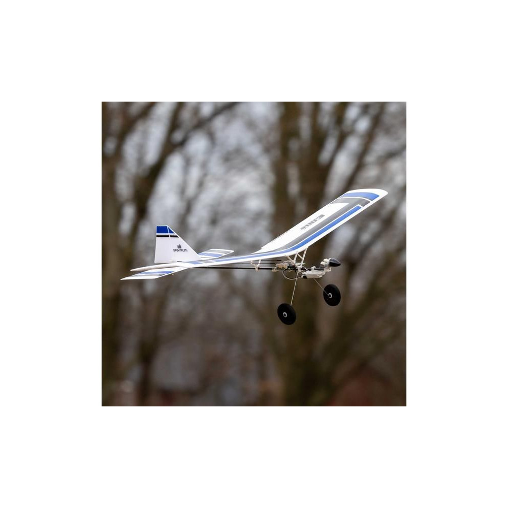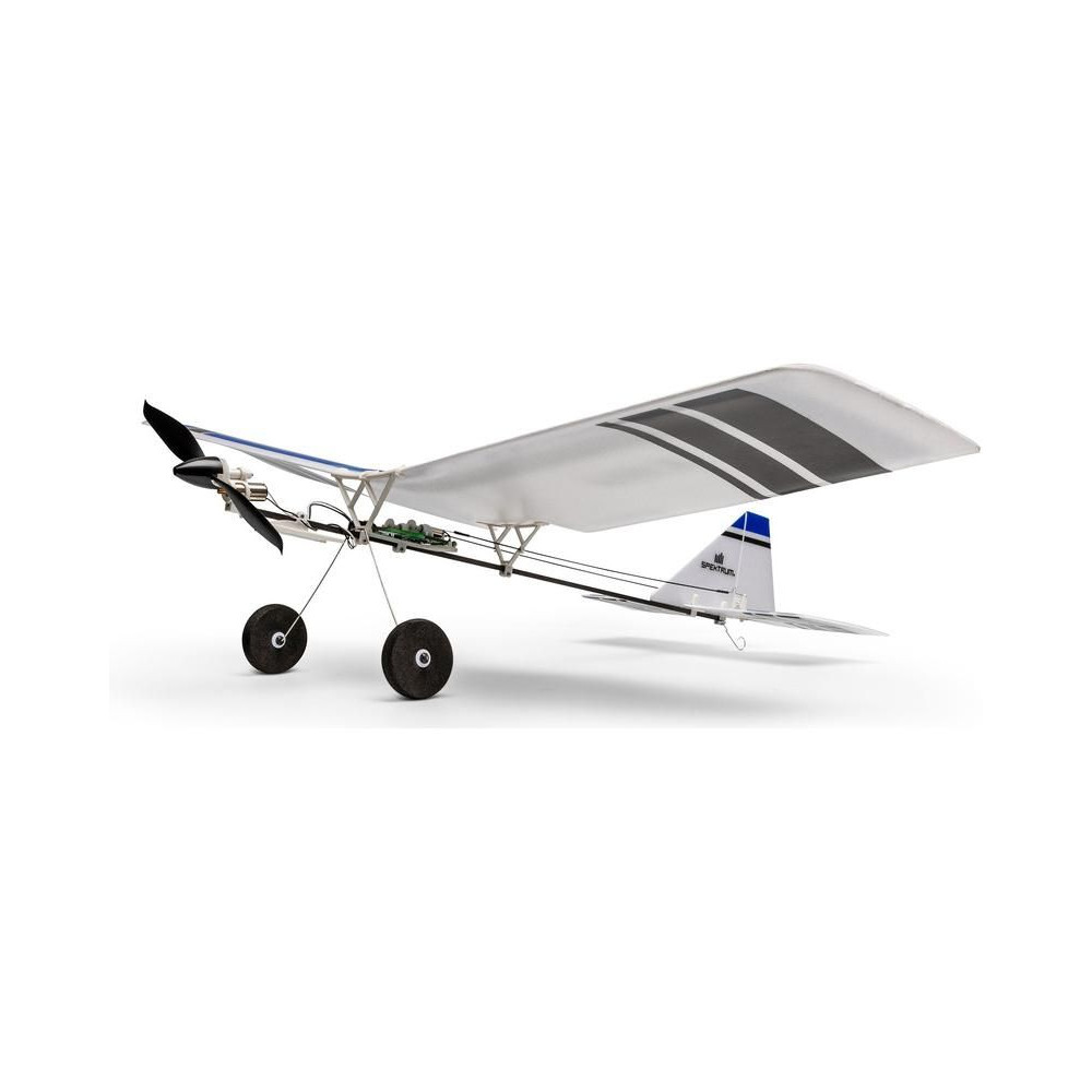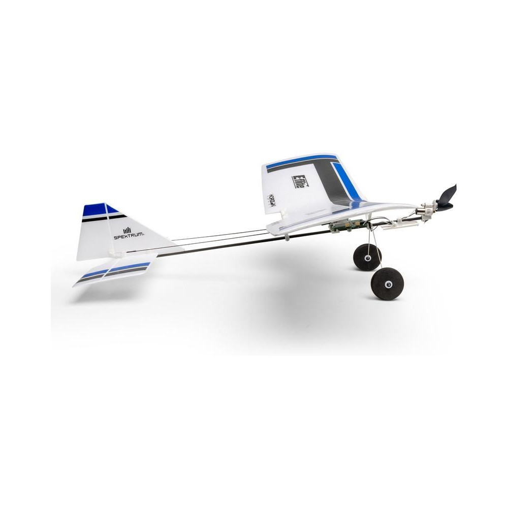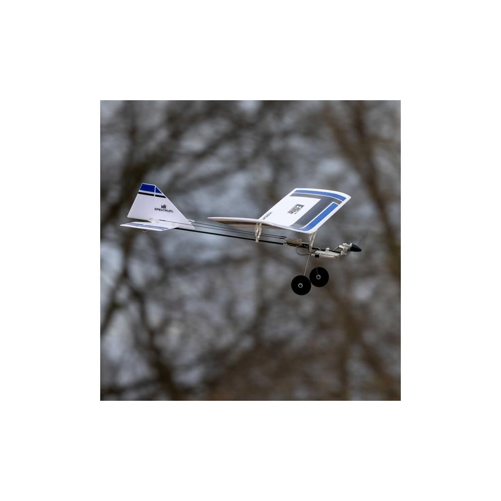 A készlet egy készre szerelt BNF modellt tartalmaz Spektrum vevővel, csak párosítsd a Spektrum DSMX vagy SLT adóval és töltsd fel a Lipol 150mAh 1S-t. A modell figyelemre méltó manőverezőképességgel rendelkezik, ami tökéletesen alkalmas beltéri, tornatermi - vagy enyhe körülmények között akár szabadtéri repülésre is. A könnyű súlya miatt kisebb a sérülés kockázata egy akadályba ütközés esetén. A kormánylapát, a magassági kormány és a motor szabályozható. A modell kerekekkel is fel van szerelve a földről történő indításhoz.