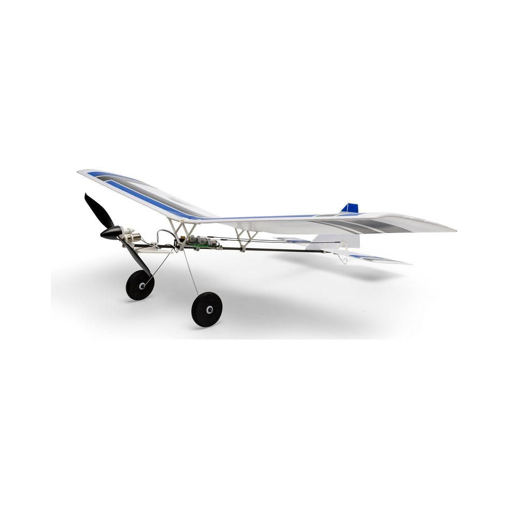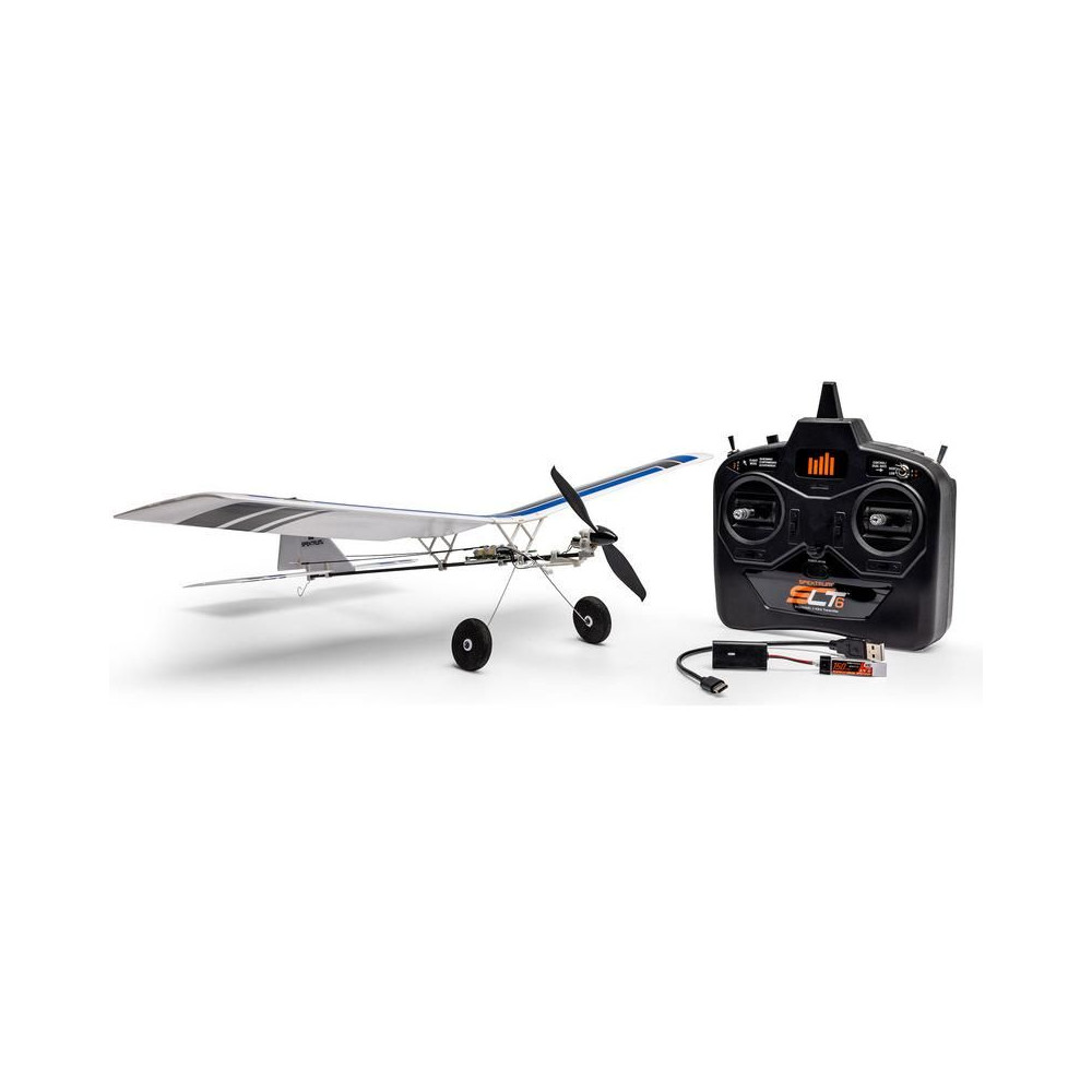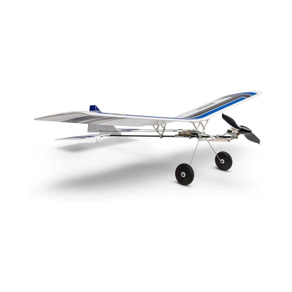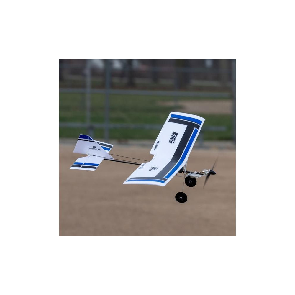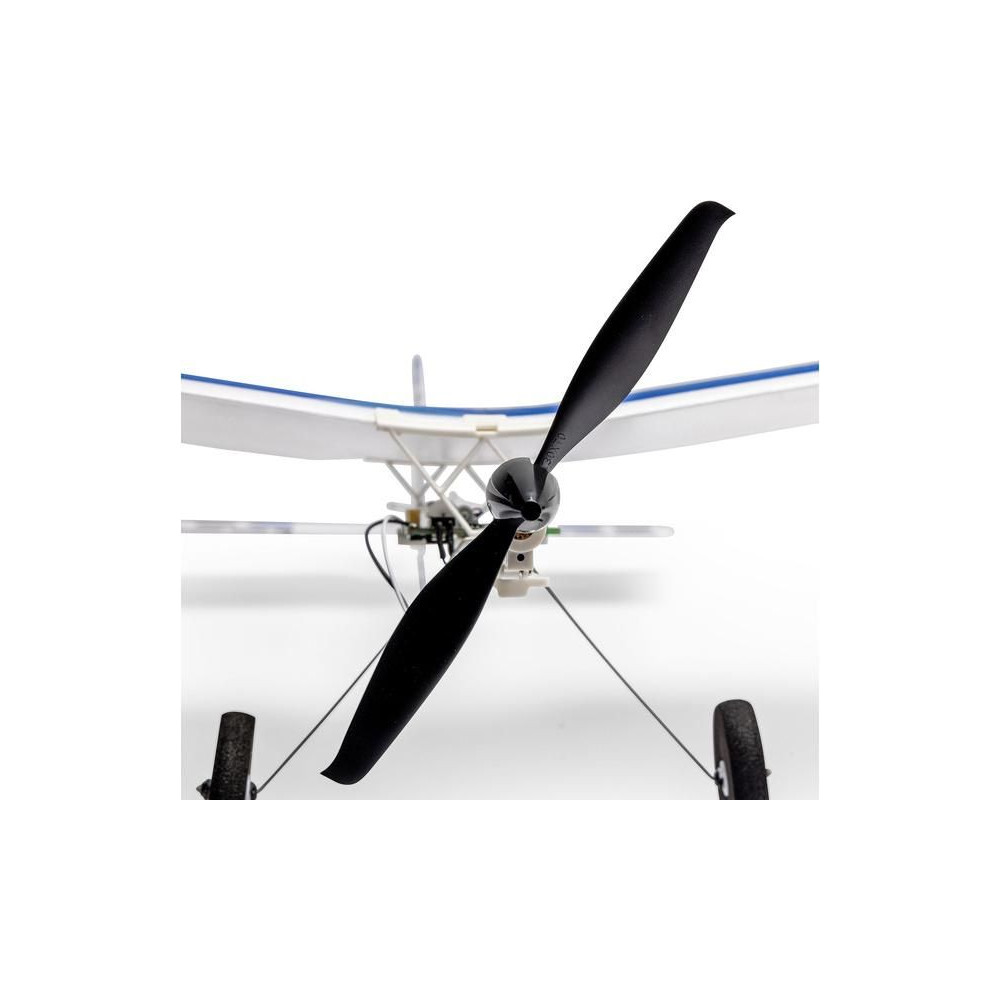 A készlet egy készre szerelt BNF modellt tartalmaz Spektrum vevővel, csak párosítsd a Spektrum DSMX vagy SLT adóval és töltsd fel a Lipol 150mAh 1S-t. A modell figyelemre méltó manőverezőképességgel rendelkezik, ami tökéletesen alkalmas beltéri, tornatermi - vagy enyhe körülmények között akár szabadtéri repülésre is. A könnyű súlya miatt kisebb a sérülés kockázata egy akadályba ütközés esetén. A kormánylapát, a magassági kormány és a motor szabályozható. A modell kerekekkel is fel van szerelve a földről történő indításhoz.