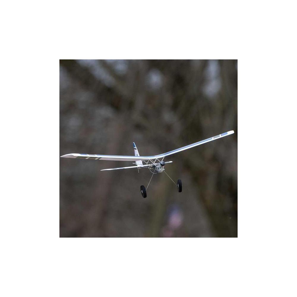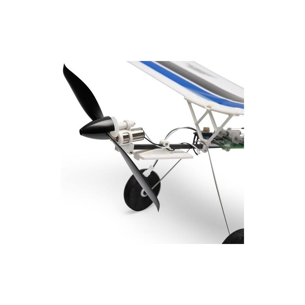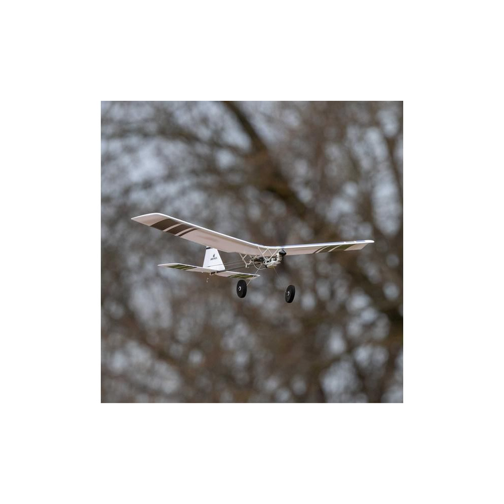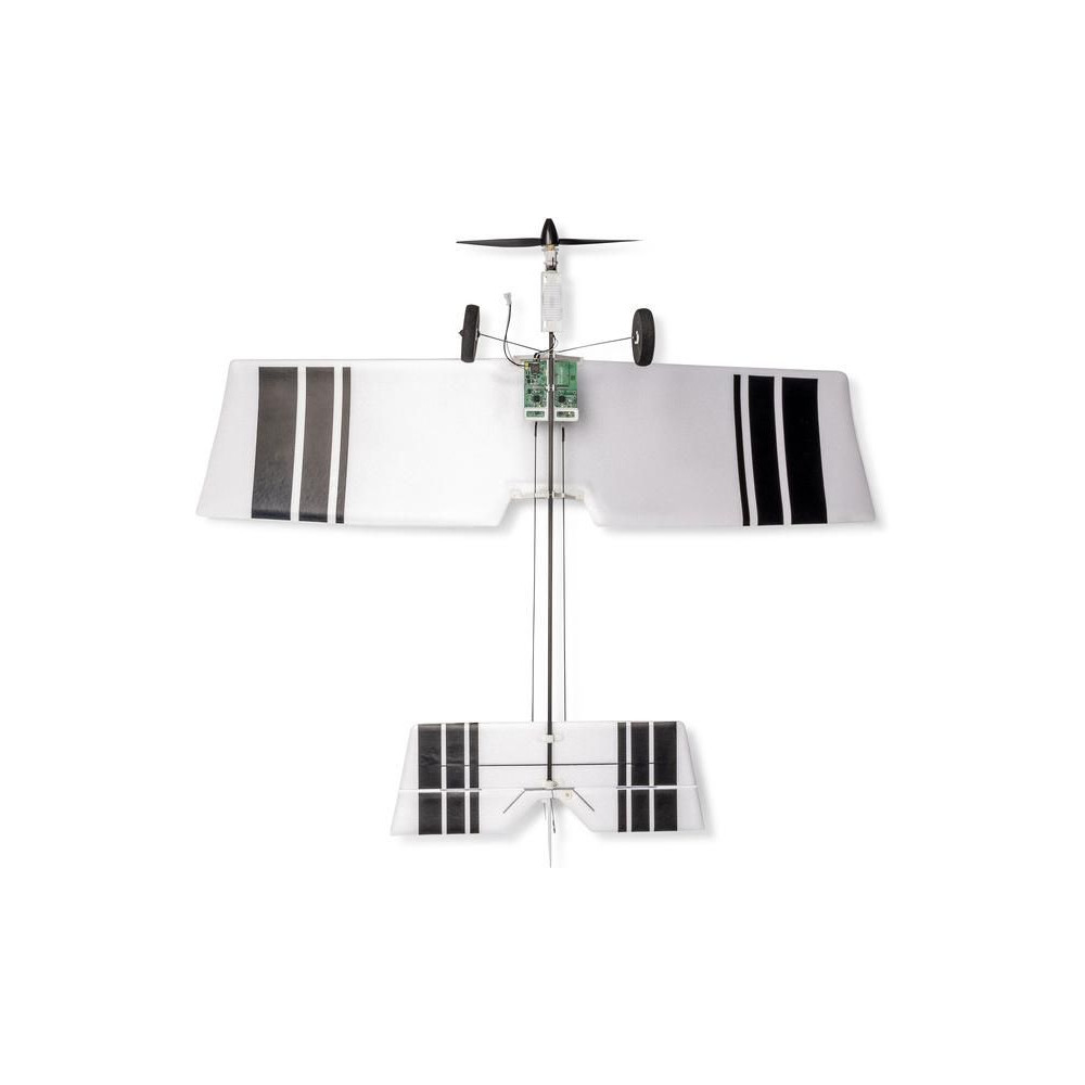 A készlet egy készre szerelt BNF modellt tartalmaz Spektrum vevővel, csak párosítsd a Spektrum DSMX vagy SLT adóval és töltsd fel a Lipol 150mAh 1S-t. A modell figyelemre méltó manőverezőképességgel rendelkezik, ami tökéletesen alkalmas beltéri, tornatermi - vagy enyhe körülmények között akár szabadtéri repülésre is. A könnyű súlya miatt kisebb a sérülés kockázata egy akadályba ütközés esetén. A kormánylapát, a magassági kormány és a motor szabályozható. A modell kerekekkel is fel van szerelve a földről történő indításhoz.
