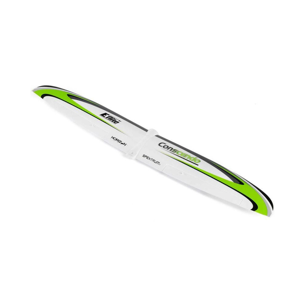Alkatrész az E-flite Conscendo 0.80m SAFE Select BNF Basic távirányítású modellrepülőgéphez: szárny matricákkal. Tartalmazza a szervomotorok burkolatát, karjait és húzórudait.