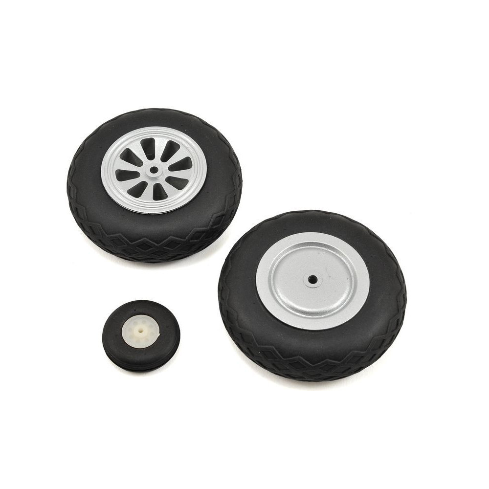 Kerékkészlet RC modell repülőgéphez P-51D 1.2m. A kerekek méretei 75x23mm, furat 3mm, sarkantyúkerék d.31mm.