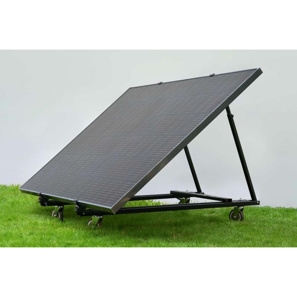 Egyedi acélszerkezet 400W-os fix panelhez az EcoFlow által. A 20°-75°-os dőlési lehetőség egész napra optimális szöget biztosít. Falra, erkélyre vagy bármilyen sík felületre felszerelhető. Külön megvásárolható görgők a könnyen áthelyezhető opcióhoz.