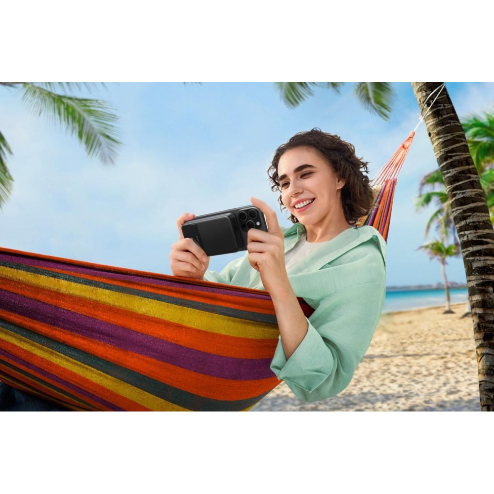 A Rapid akár 65 W-os ultragyors töltést tesz lehetővé. Pl. A 13 hüvelykes MacBook Air további 8 órán át képes működni. A külső akkumulátor beépített 65 W-os kábellel rendelkezik, így nem kell külön kábelt cipelned. A Qi2 vezeték nélküli töltés 15 W-os töltéssel rendelkezik. Élvezd az egyszerű 15 W-os vezeték nélküli töltést, amely kétszer olyan gyors, mint a 7,5 W-os Qi1 töltés.