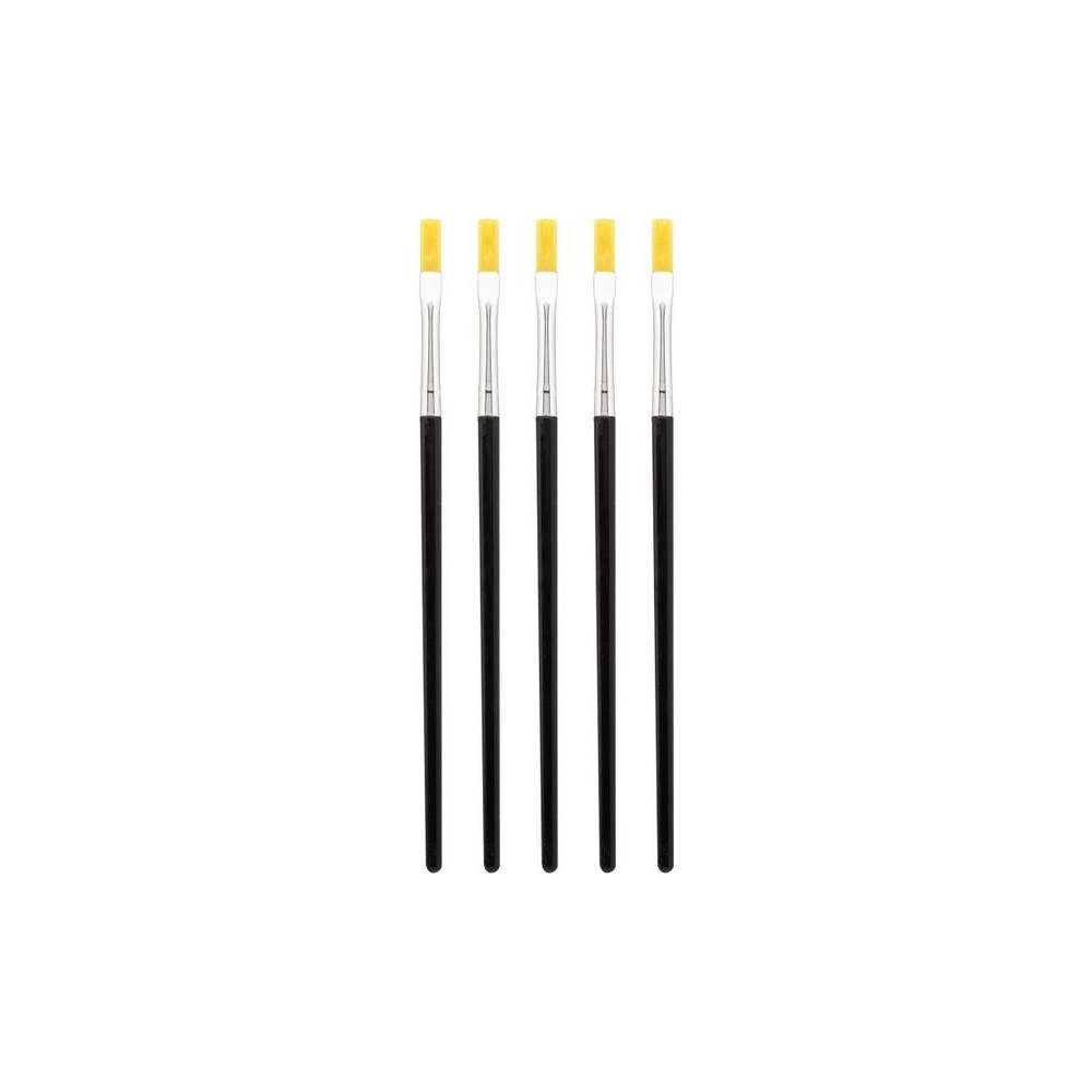 Lapos ecsetkészlet szintetikus nejlon sörtékkel, amelyek kemények, de rugalmasak. Ideális akril-, olaj- és akvarellfestékekkel, PVA ragasztókkal és egyéb anyagokkal való munkához. Ideális művészeti, modellezési és kézműves projektekhez.