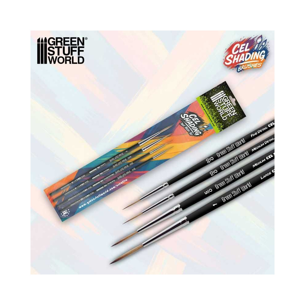 A Cel Shading ecsetek kifejezetten anime stílusú miniatúrák és figurák festéséhez készültek a flat shading technikával. Ez a japán animációból (cel shading) származó technika a fényt és árnyékot egyértelműen meghatározott színterületeken ábrázolja elmosódás vagy sima átmenetek nélkül, így egy 2D-s illusztrációhoz hasonló vizuális hatást ér el egy 3D-s figurán.