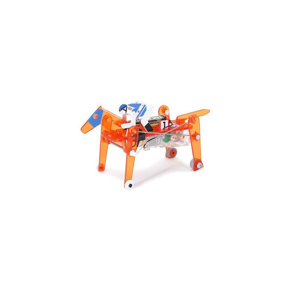 Najnovšia a najrýchlejšia verzia série Robocraft, tento cválajúci dostihový kôň s džokejom, je veľmi zábavný na stavanie, veľmi zábavný na hranie a tiež vzdelávací! Využíva ľavú a pravú nohu pohybujúce sa súčasne, nohy a základňa kolies boli navrhnuté pre stabilitu a rýchlejší beh. Celkovo môže tento cválajúci dostihový kôň bežať o 30 % rýchlejšie ako mechanický králik.