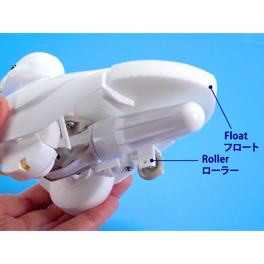 Ismerkedj meg a Tamiya népszerű mechanikus kacsájának fehér változatával. Sárga csőrével és lekerekített testével ez a modell nagy kalandokra készült szárazföldön és vízen egyaránt. A modell szívében egy mini víz alatti motor található, amely egy hajtókaros mechanizmust forgat egy sebességváltón keresztül, mozgásba hozva a rugalmas műanyag uszonyokat.