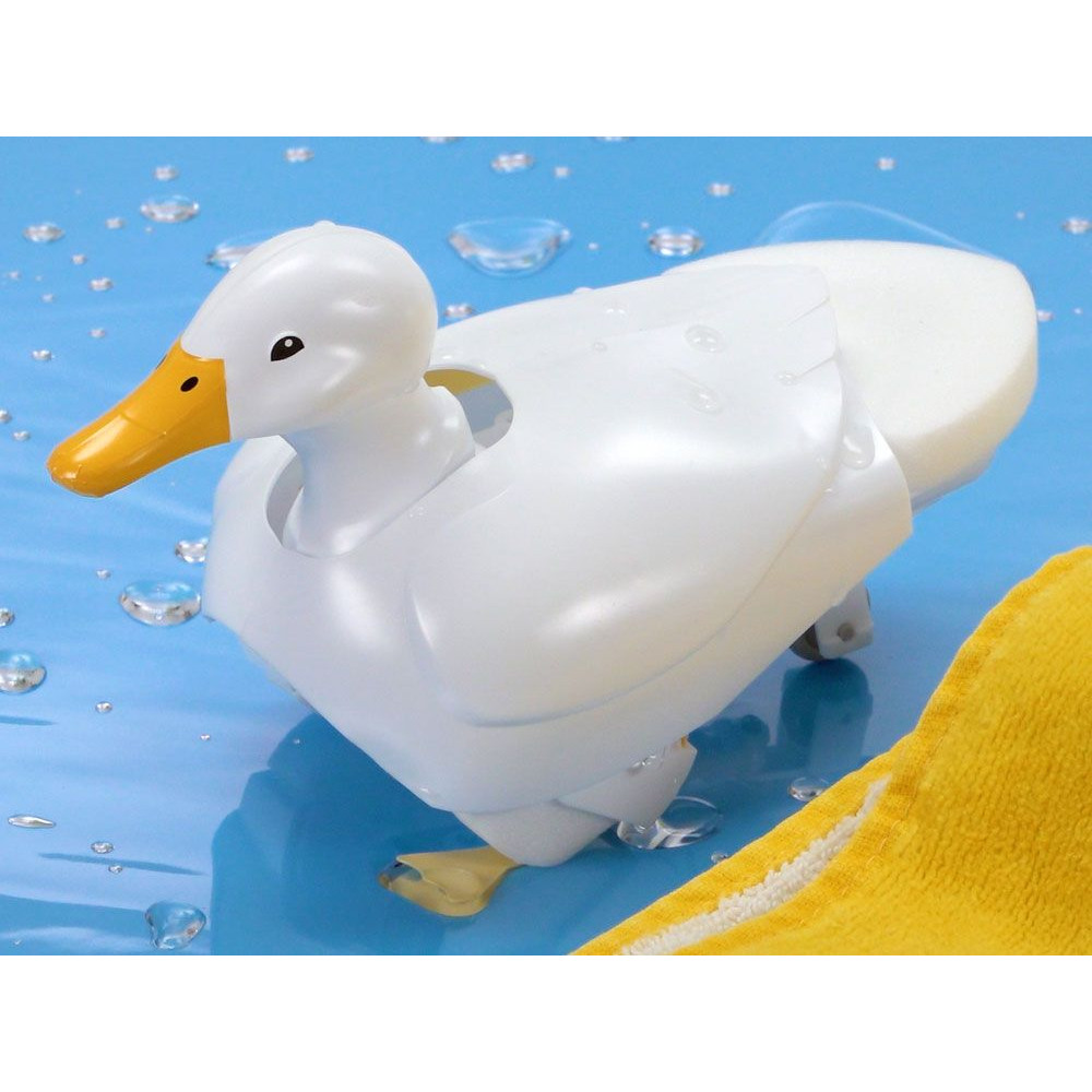 Tartós részletek: A szemek és a sárga csőr vízálló matricákból készültek, amelyek bírják a nedves játékot.