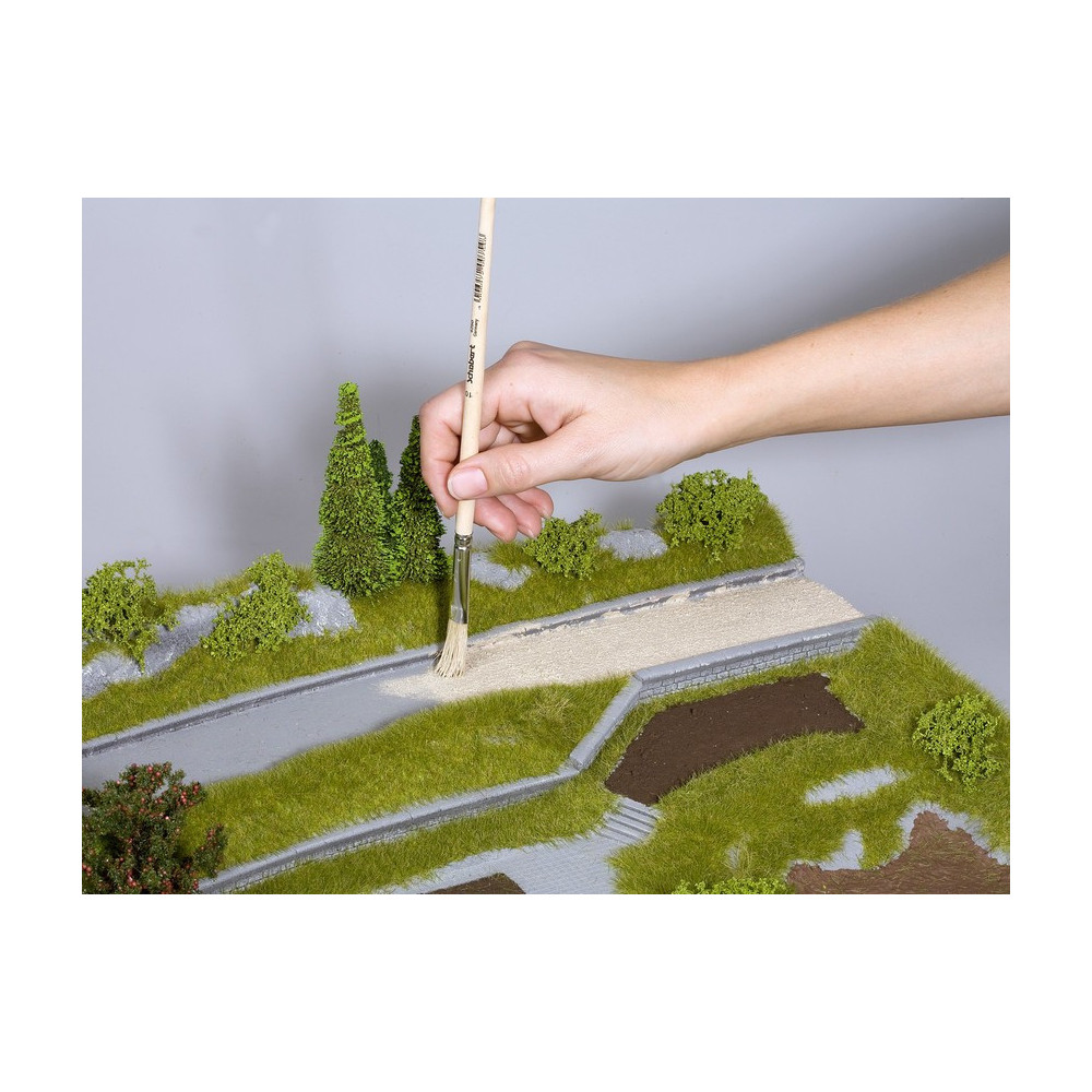 pasta je ideálna na tvorbu cestičiek a povrchov, po zaschnutí je vzhľad veľmi realistický, počas tvrdnutia je možné na aplikovanej ploche "vyjazdiť" stopy po automobiloch a pod.