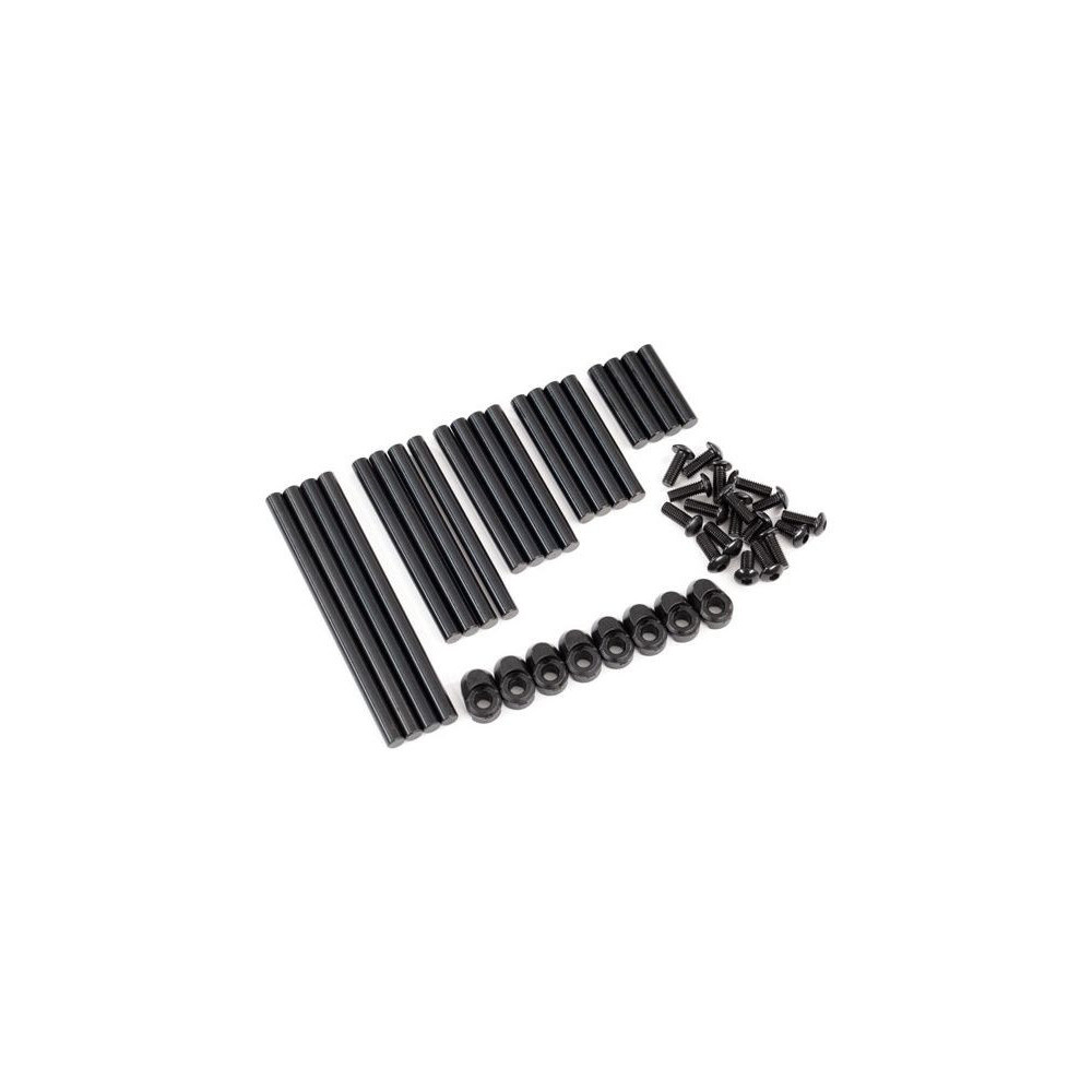 Traxxas kerékfelfüggesztő csapok (készlet) - komplett, edzett acél. 4x64mm (4), 4x22mm (4), 4x38mm (4), 4x33mm (4), 4x47mm (4)/ 3x8mm BCS (14)/ 3x6mm BCS (4)/ rögzítők (8).