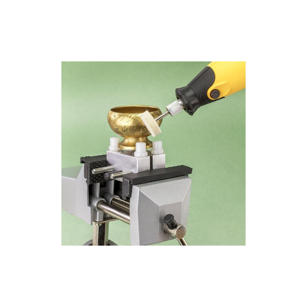 A Modelcraft 30 mm-es miniszorítóbilincs két alumínium pofával rendelkezik két acélcsapon és egy acélcsavaron. Van még 4db nejlon szorítócsap is, amelyek kíméletesek a befogó darabon. ezek a csapok a csáklya testén lévő különböző lyukakba helyezhetők. A csáklya mobil, variálható és ideális a legkülönfélébb hobbihasználatokhoz.