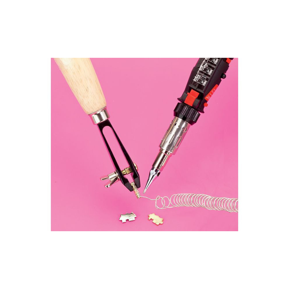 Modelcraft mini kézi szorító szárnyas anyával és fa fogantyúval, kis alkatrészek, pl. csapok, huzalok stb. vágásakor vagy forrasztásakor való tartáshoz. 12,5 mm széles pofák. A pofák simaak, és a szorító tengelyében van egy horony, amelybe hosszú csapok és huzalok illeszthetők. Teljes hossza 150mm, szélessége 35mm.