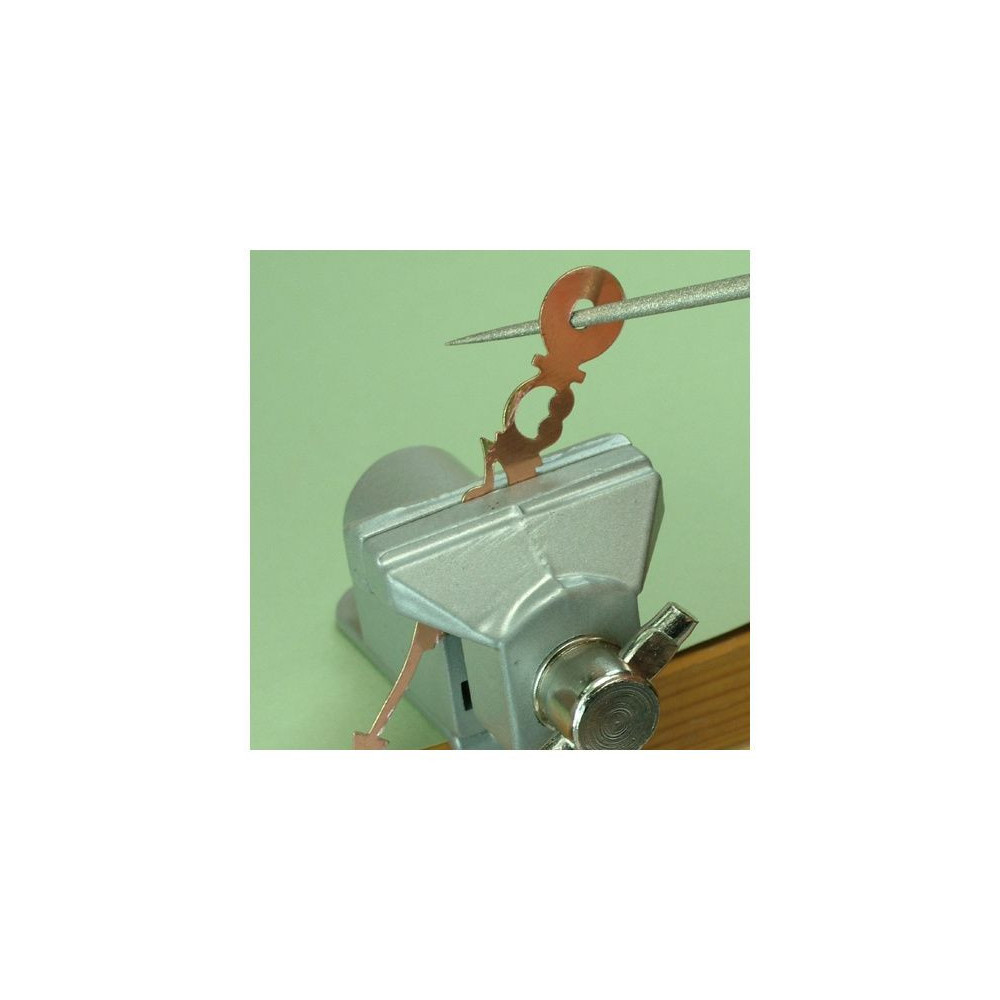 A Modelcraft mini csáklya 40 mm széles, a pofák nyitása 28 mm-ig terjed. Legfeljebb 20mm vastagságú deszkára lehet ráfeszíteni. Kisebb tárgyak rögzítésére szolgál munka közben, pl. reszelés, fúrás vágás. Alumíniumötvözetből készült, acél szorítócsavarokkal. Súlya 155g.
