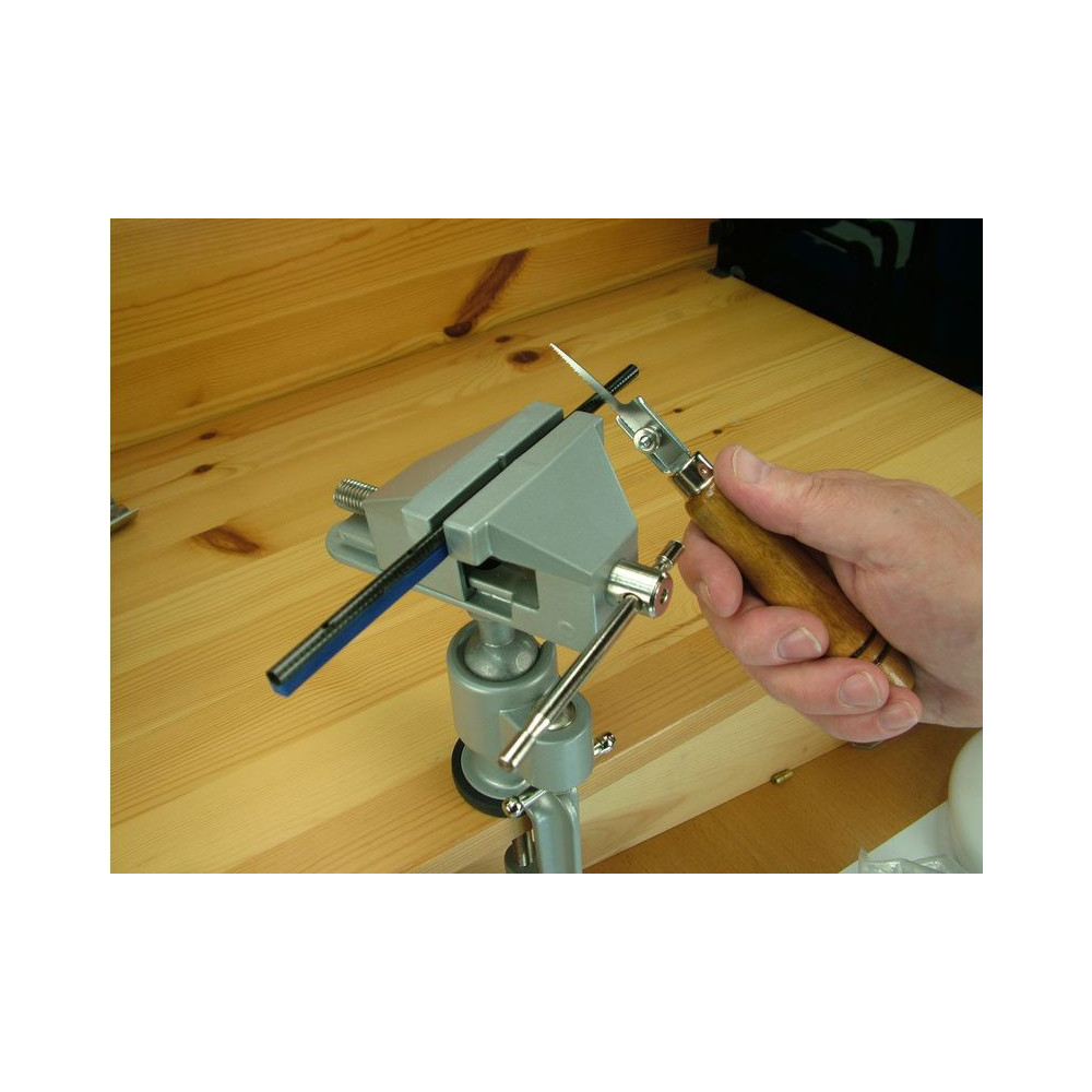 A 75 mm széles gumipofákkal ellátott Modelcraft állítható csavarhúzószekrény állítható gömbcsapra van szerelve, így az alkatrész bármilyen pozícióba beállítható. Öntött alumíniumból és nikkelezett acélból készült. A forgatható és dönthető fej lehetővé teszi, hogy a munkadarabot a legkönnyebben elérhető szögbe manőverezze, majd egyetlen karral rögzítse a pozícióban. A gumiból készült eltávolító pofák a kényes tárgyak megtartására szolgálnak, és ehhez finom fogazással rendelkeznek a munkafelületen. A szorító legfeljebb 55 mm vastagságú táblára rögzíthető, a felső ülőfelület puha párnával rendelkezik, hogy megakadályozza a felület megkarcolását.