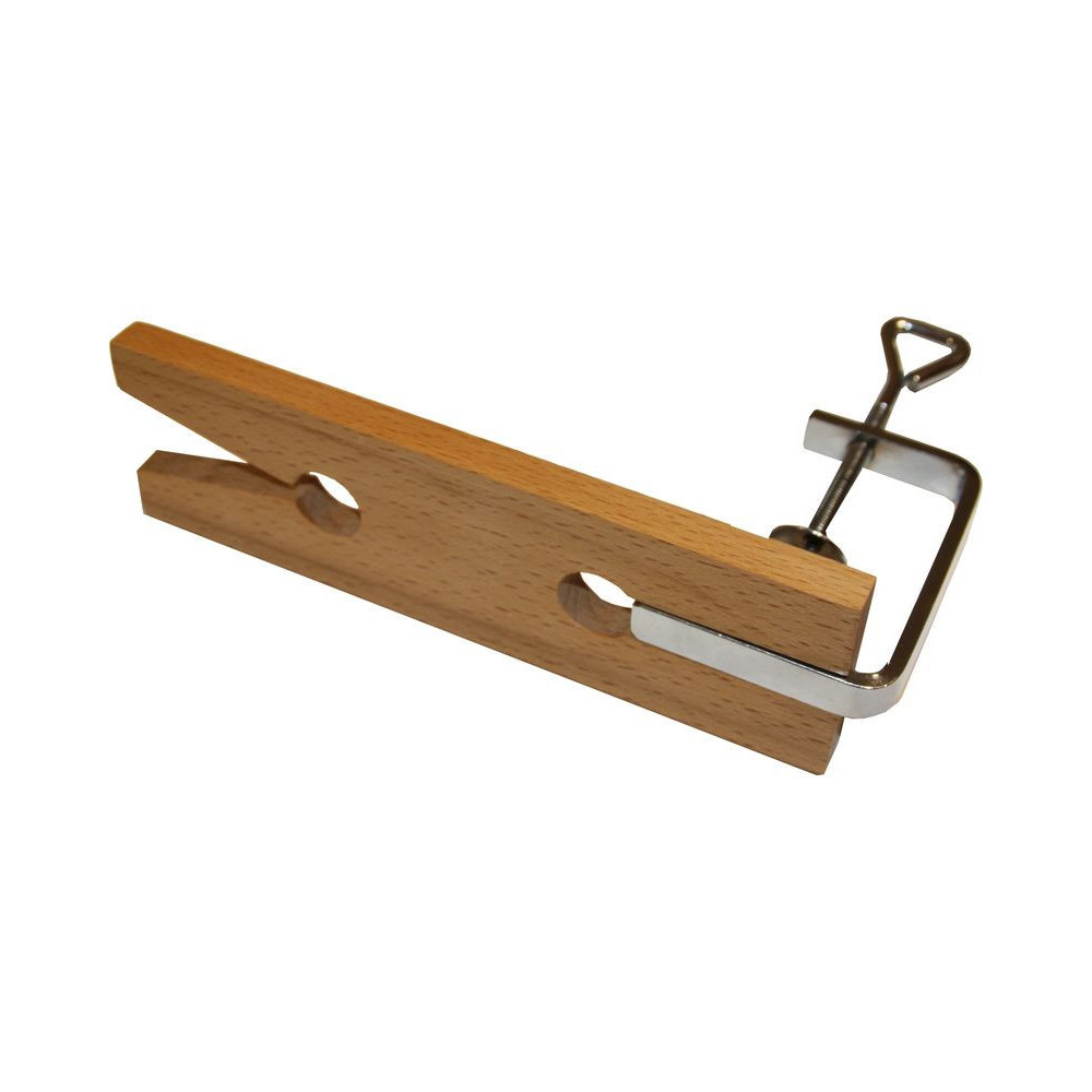 Modelcraft vágótalp szorítóval, használható a munkadarab rögzítésére fűrészelés, fűrészelés, fúrás stb. közben. Az alátét egy 187x55x12 mm-es keményfa tömbből készül, "V" kivágással és egy horonnyal a szorító számára. A blokkot egy bilinccsel rögzítik a munkapadhoz.