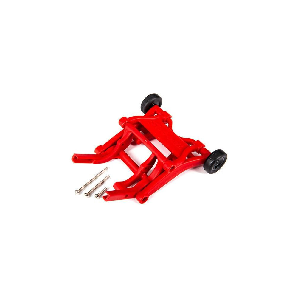 Hátsó támasztó kerekek, amelyek megakadályozzák, hogy az autó felboruljon, amikor gázt adsz, piros színben a Traxxas 1:10 RC autó modellekhez.