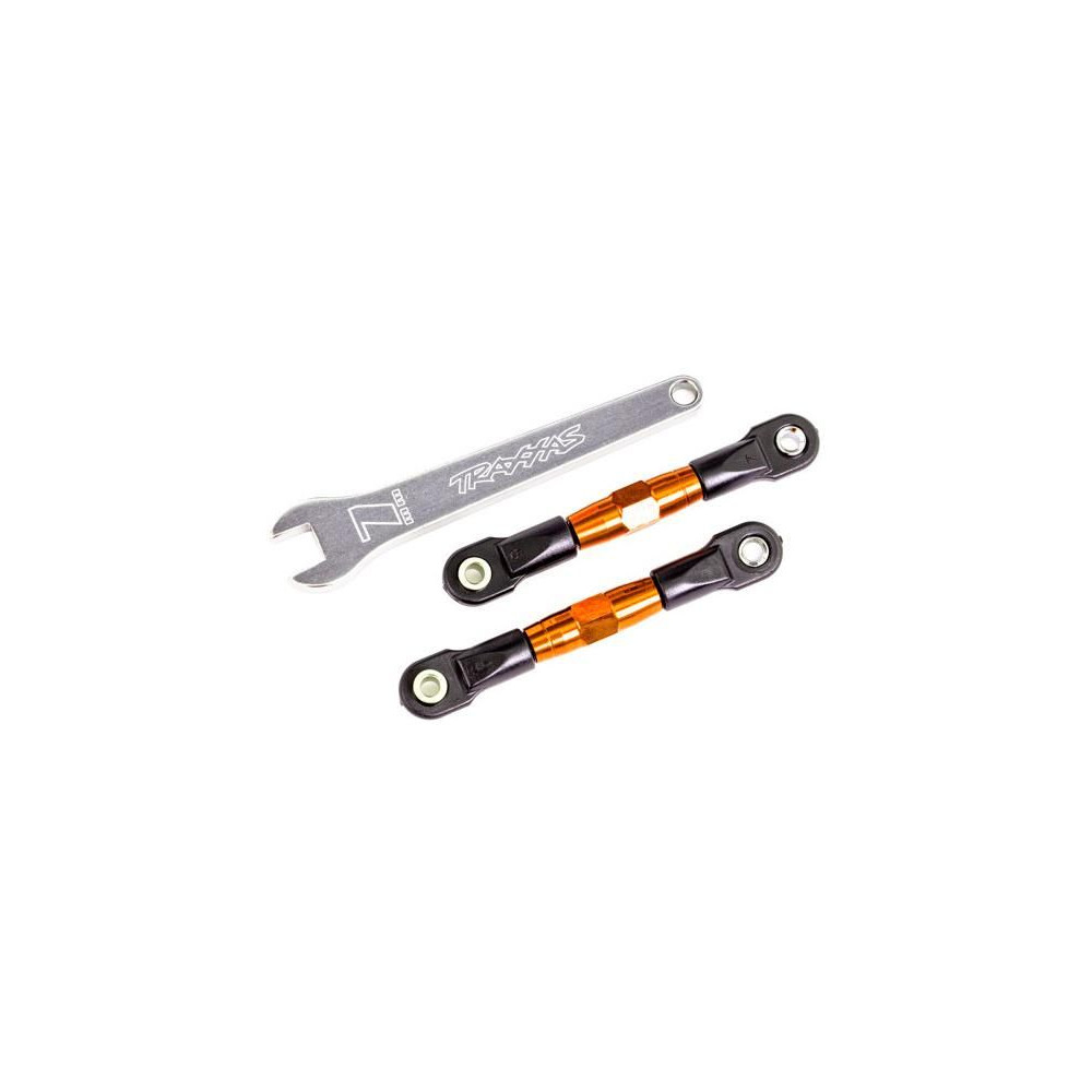 Traxxas narancssárga eloxált hátsó hajtórúd (2db), 7075-T6 erősségi alumíniumból, összeszerelve, golyóscsap végzárókkal, állítható csavarkulccsal. Tuning alkatrész a Drag Slash-hez.