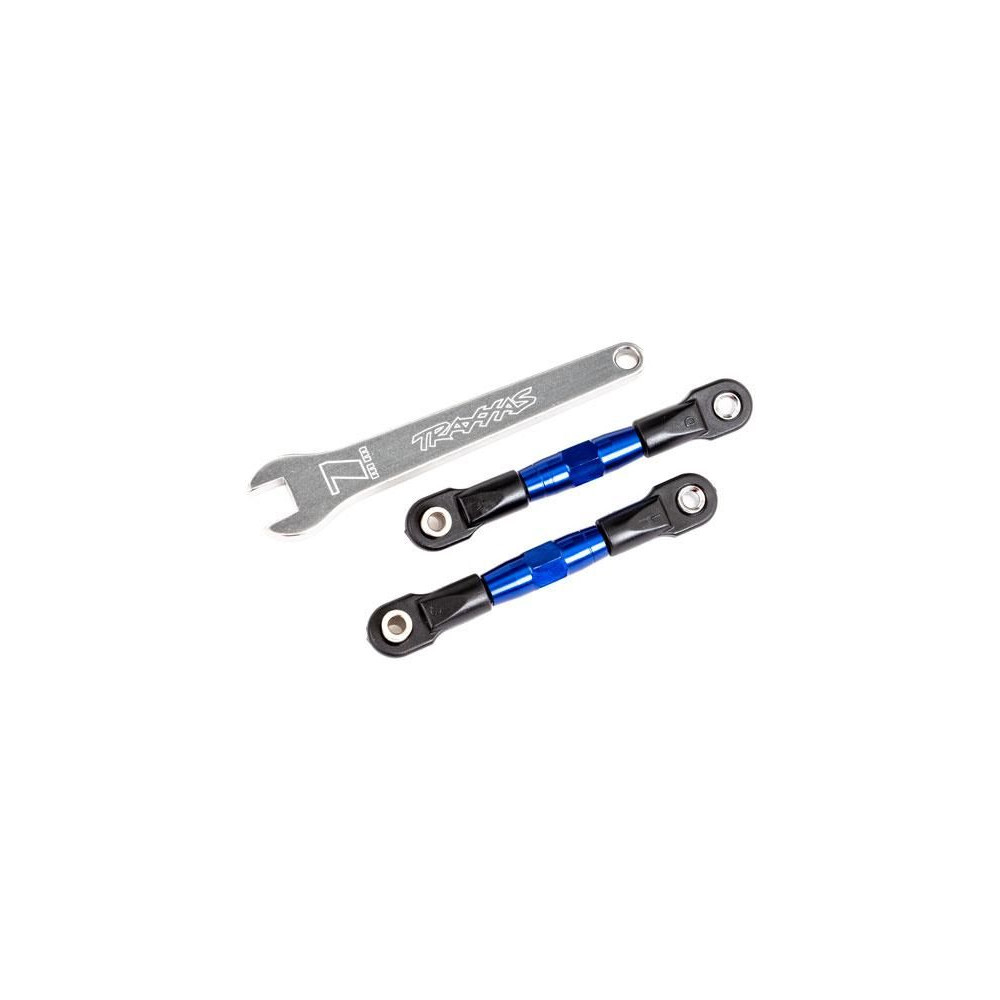 Traxxas kék eloxált hátsó hajtórúd (2db), 7075-T6 erősségi alumíniumból, összeszerelve, golyóscsap végzárókkal, állítható csavarkulccsal. Tuning alkatrész a Drag Slash-hez.