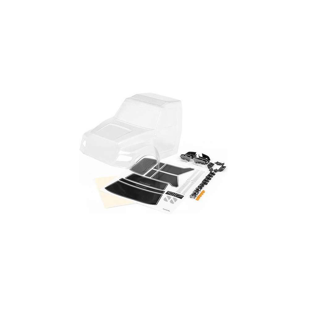 Traxxas TRX-6 Ultimate RC Hauler karosszéria tiszta - festést igényel, tartalmazza az első és tetőfényszórókat, oldalsó tükröket, matricákat.