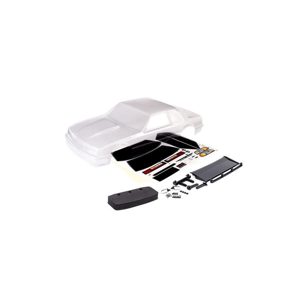 Traxxas hivatalosan engedélyezett Ford Mustang 5.0 karosszéria - átlátszó, RC modellautóhoz Drag Slash. Alacsony profilú, könnyű karosszéria részletes kialakítással. Oldaltükrökkel és hátsó szárnnyal. Habszivacs lökhárító és konzol tartozék.