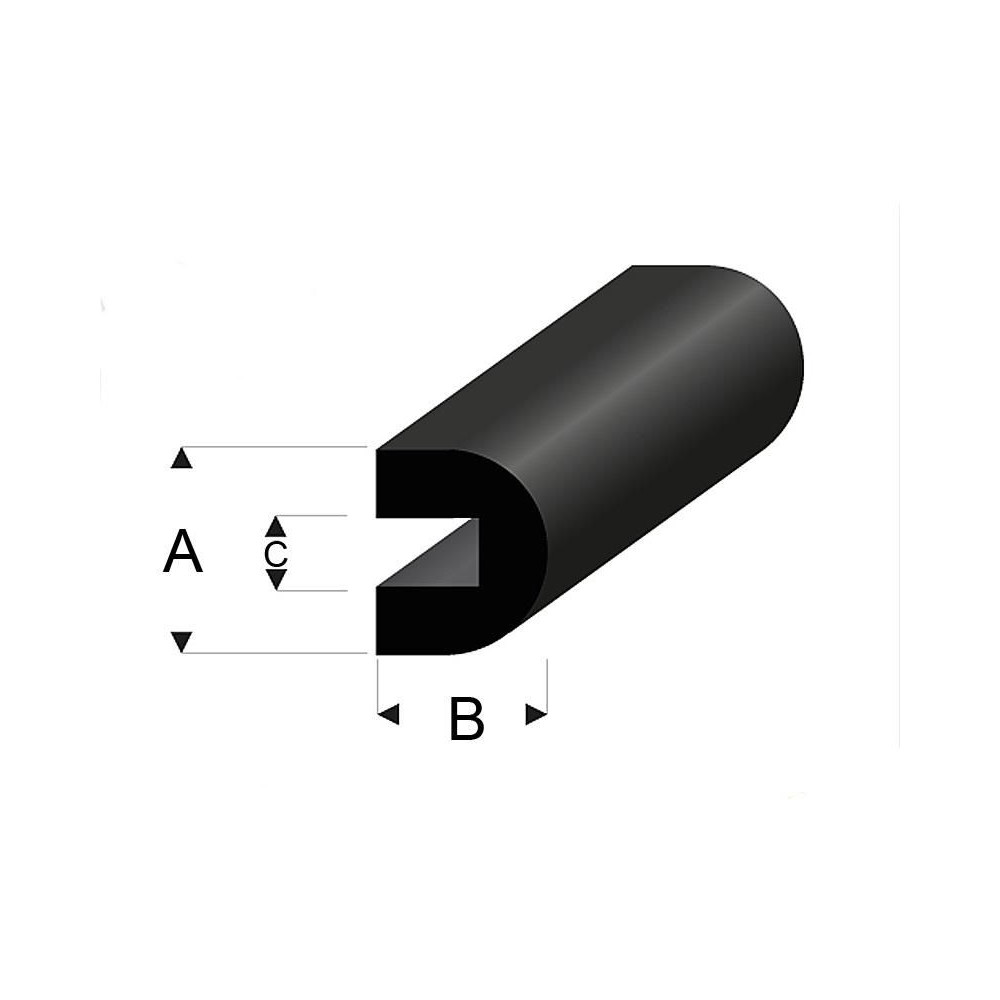 Raboesch lekerekített gumiprofil 6x5mm, 2mm-es horonnyal, 2m hosszú. Használható élvédőként vagy szegélylécként és egyéb alkalmazásokhoz.