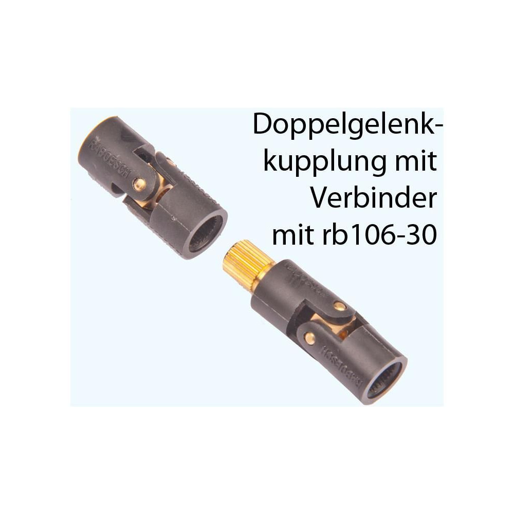Raboesch kardáncsukló hajócsatlakozáshoz nejlon, sárgaréz kő csapokkal. Univerzális tengely sárgaréz tengelykapcsolókhoz való használatra. Súly 5,2g, hossza 31,7mm, átmérője 13mm. A szükséges sárgaréz betétek széles furat- vagy menetméretválasztékkal kaphatók. Ez lehetővé teszi a csónakcsatlakozó bármilyen motortengely és oszlop kombinációhoz való konfigurálását.