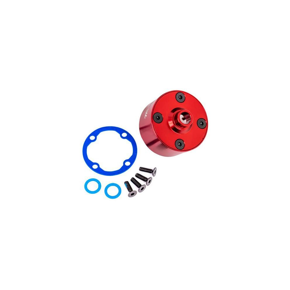Traxxas piros eloxált alumínium differenciálmű test - tömítés, 4x 3x10 mm CCS csavar.