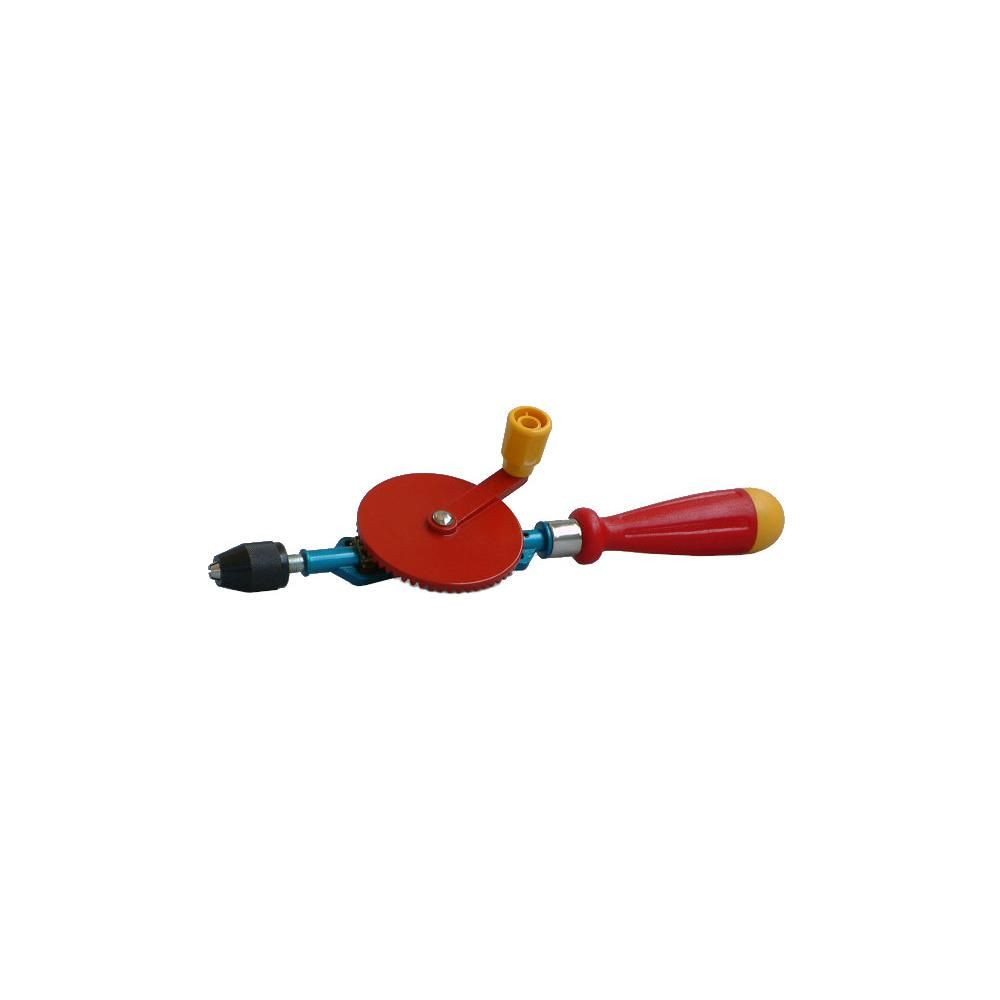 Kézi fúrógép műanyag fogantyúval, robusztus fogaskerékkel és tokmánytal 1,0-6,5 mm átmérőjű fúrószárak befogására.