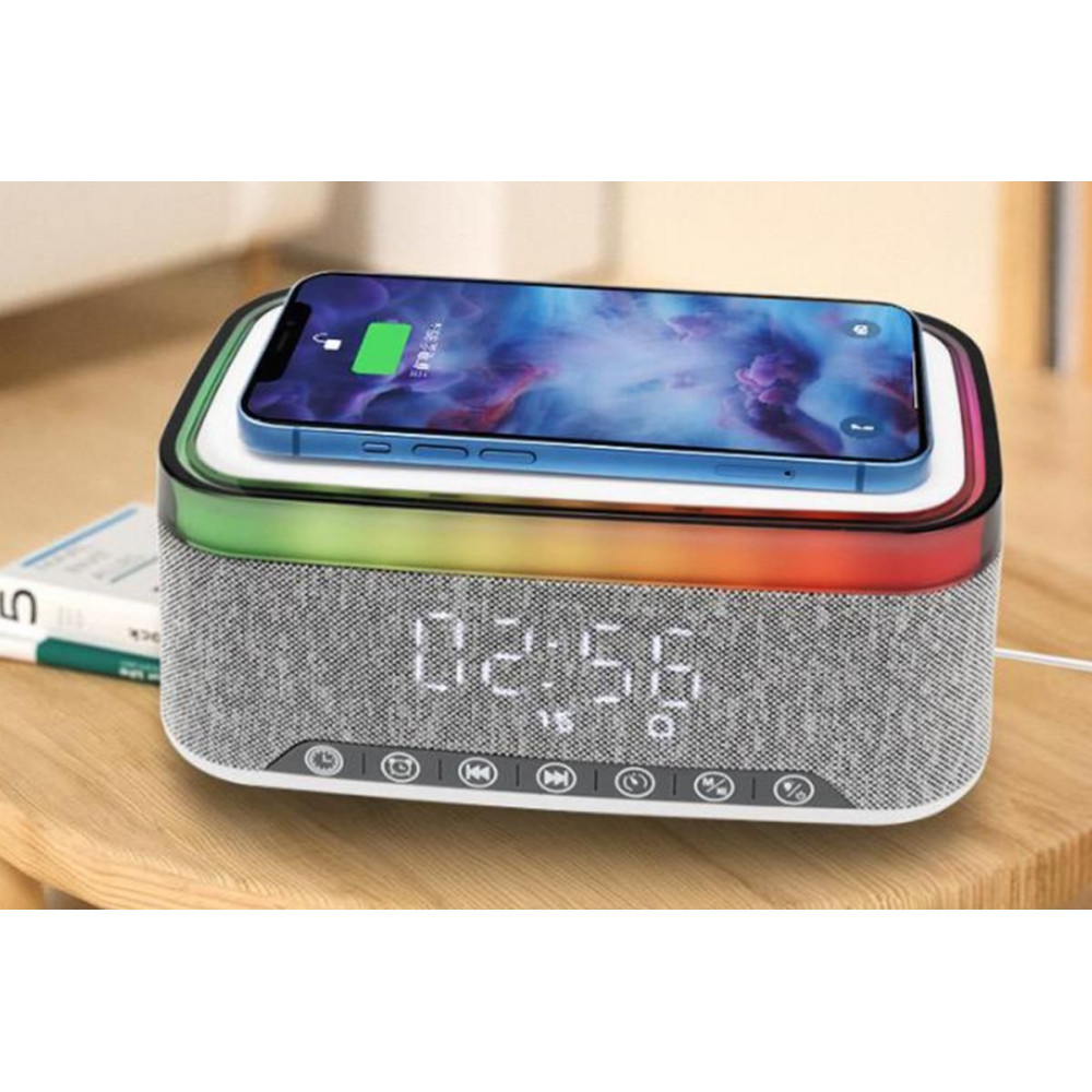 920g Méret: 180 x 100 x 90mm Akkumulátor kapacitás: 1800 mAh Töltési idő: kb. 2-3 óra Teljesítmény: 18W Vezeték nélküli töltő teljesítménye: 15W Bluetooth verzió: 5.3 Bluetooth hatótávolság: 10m Jellemzők: Fehér zaj, óra, ébresztő, LED környezeti fény, TF , FM, AUX, USB.