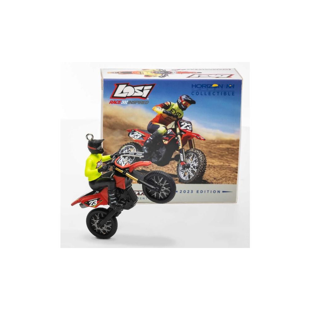 A Horizon Hobby 2023-as kiadású, műanyagból készült, az eredeti Losi Promoto-MX pontos CAD-rajzai alapján készült gyűjtői ünnepi dísz replikája minden Losi rajongót boldoggá tesz.