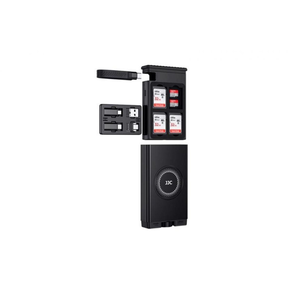 JJC Multifunkcionális alumíniumötvözet kártyatároló doboz olvasóval és adapterekkel