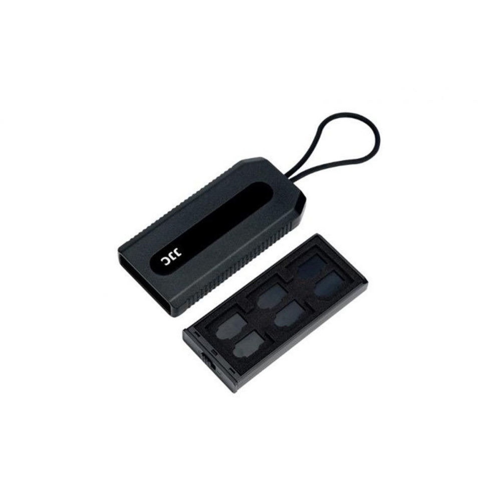 A JJC dupla memóriakártya-tok nélkülözhetetlen kiegészítő fotósok, videósok és minden technológiai rajongó számára, akiknek megbízható és áttekinthető tárolási módra van szükségük memóriakártyáik számára. Ez a kompakt és tartós tok akár 6 SD-kártya és 12 microSD (TF) kártya tárolására is alkalmas, így bőséges tárhelyet biztosít a különféle memóriakártyák számára egyetlen praktikus és hordozható tokban.