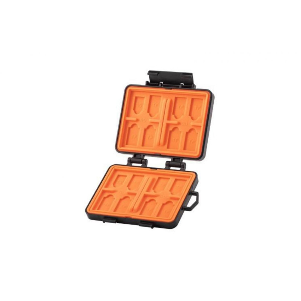 A vízálló memóriakártya-tároló doboz (62 g) egy praktikus és kompakt tok, amely akár 8 SD-kártyát, 14 TF-kártyát és 2 Nano SIM-kártyát is képes tárolni. Vízálló kialakításának köszönhetően megvédi kártyáit a nedvességtől és a sérülésektől. A doboz könnyű és 71,8 x 90 x 16 mm méretű, így ideális megoldást kínál adathordozói rendszerezéséhez és biztonságos tárolásához.Více informací