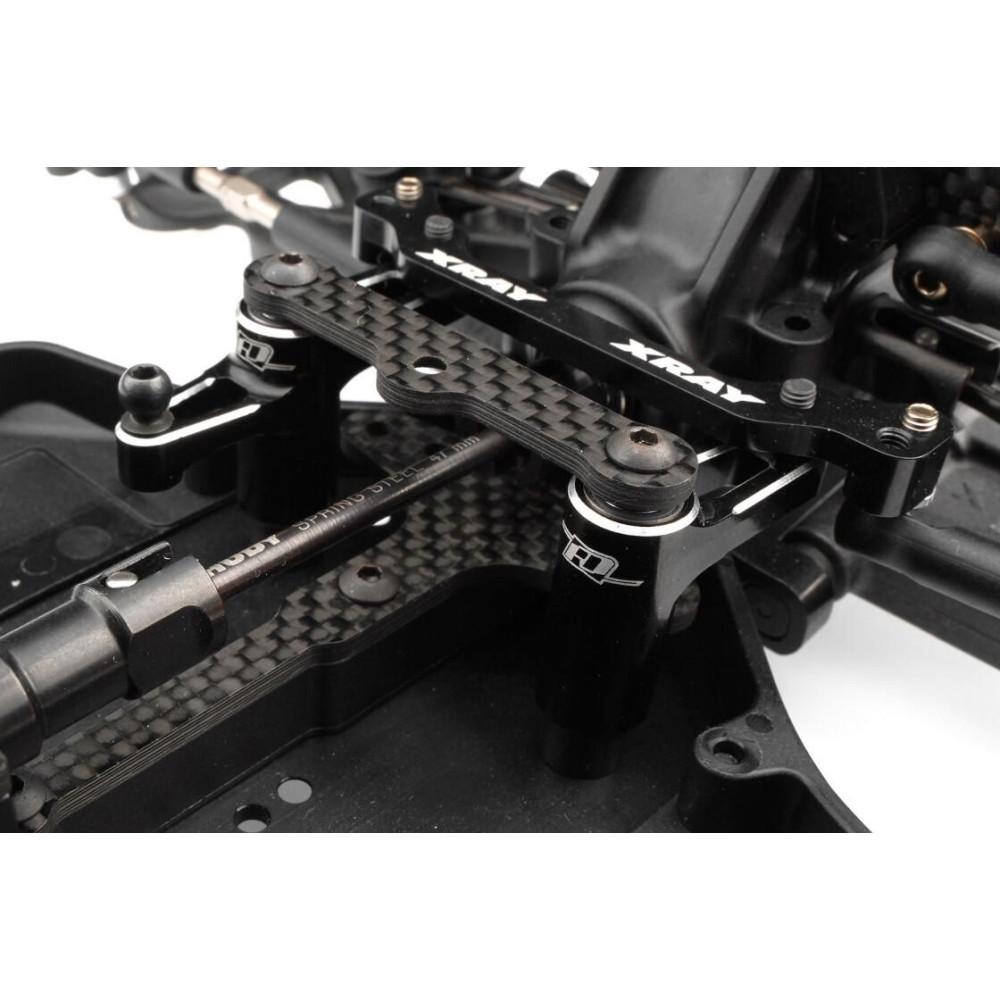 A Revolution Design XB4 25 alumínium kormánykarok közvetlen frissítést jelentenek az XB4 sorozatú Xray Buggy-dhoz. Kiváló minőségű 7075-T6 alumíniumból készültek és fekete eloxálással vannak bevonva a diszkrét megjelenés érdekében. Ezek a hajtókarok helyettesítik a standard műanyag kormányszerkezetet, és kiküszöbölik a beépített szervo-mentőt a pontosabb és közvetlenebb kormányreakció érdekében. Ezüst mart élekkel és RDRP logóval ellátva, a tartósságot prémium esztétikával ötvözik - ideálisak azoknak a versenyzőknek, akik finomítani szeretnék a kormányérzetet és javítani szeretnék a pálya állandóságát.