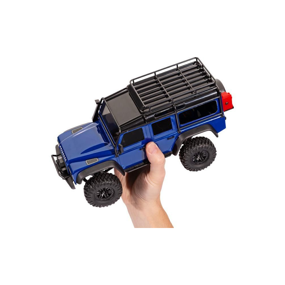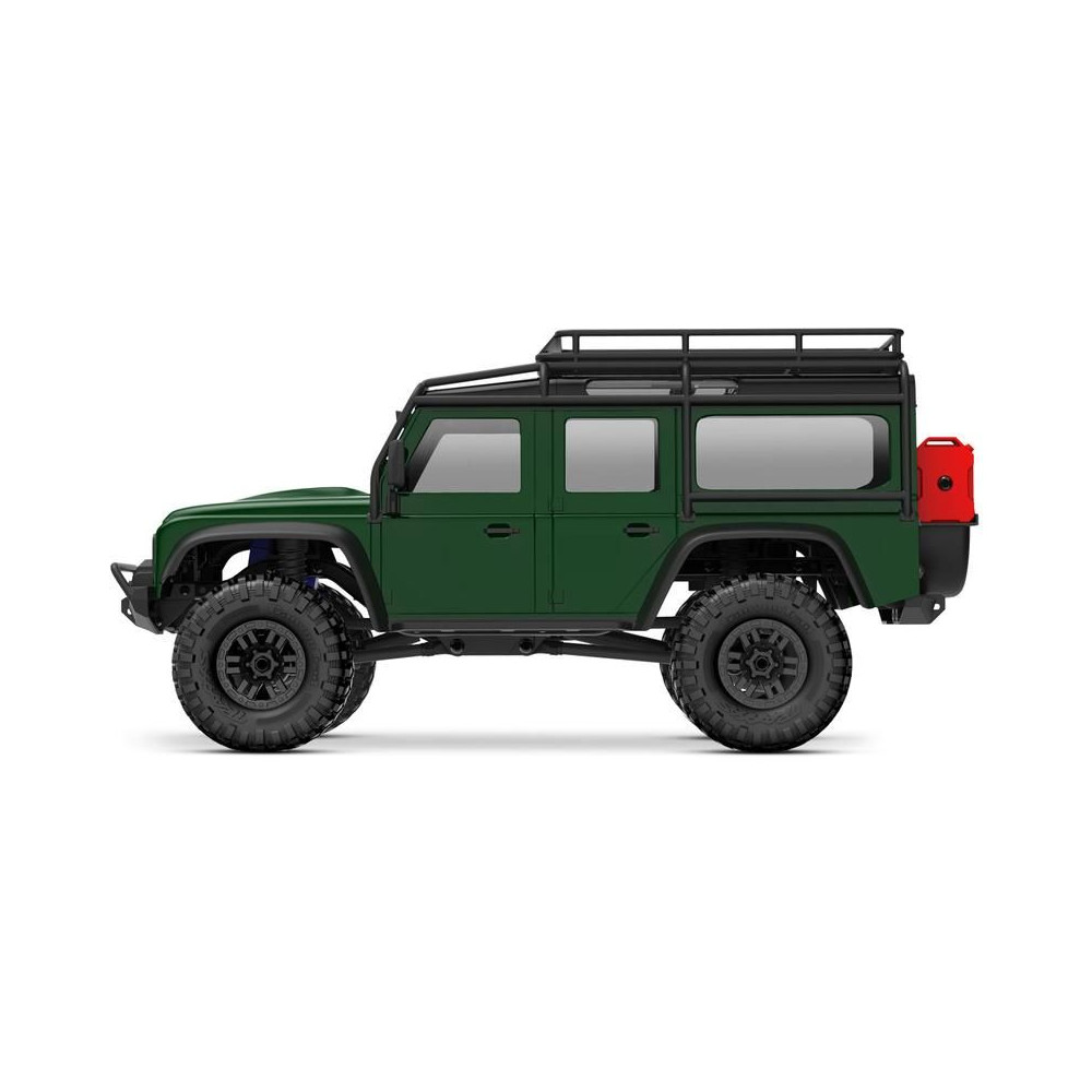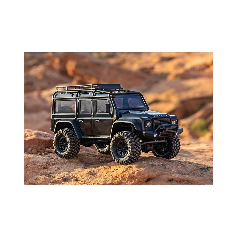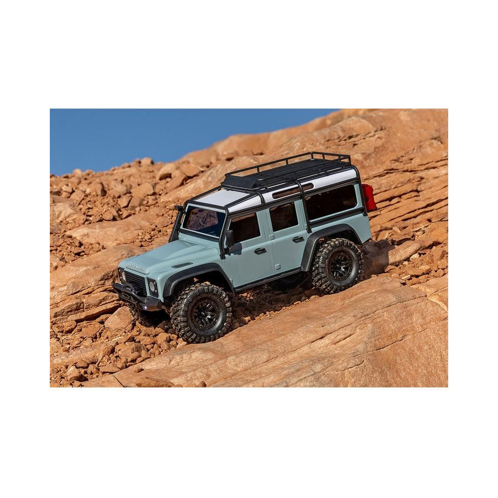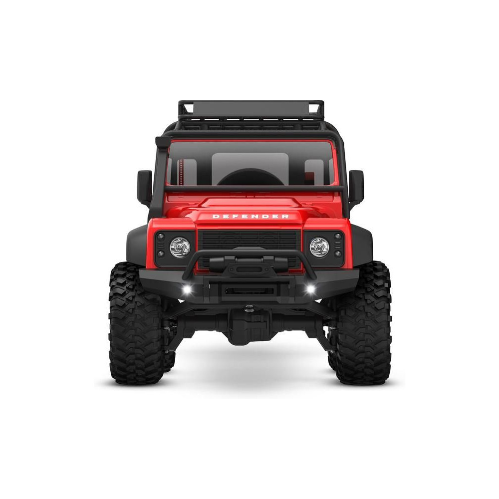 Traxxas TRX-4M Land Rover Defender távirányítású autómodell 1:18 méretarányban, lenyűgöző sokoldalúsággal és képességekkel. Fém alváz 4 pontos felfüggesztéssel, olajos lengéscsillapítókkal, 45°-os fordulási szöggel, licencelt clipless karosszériával, LED világítással a lökhárítóban. 2S LiPo akkumulátorral és USB töltővel.