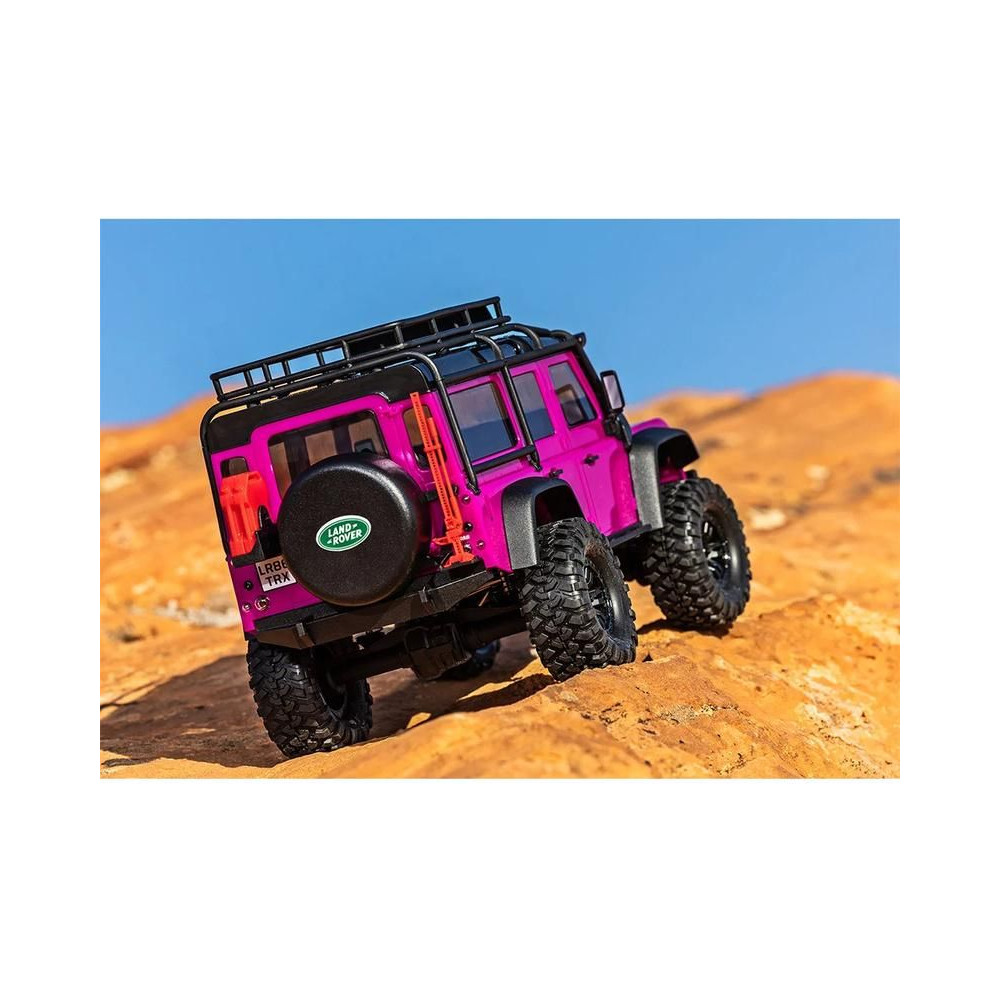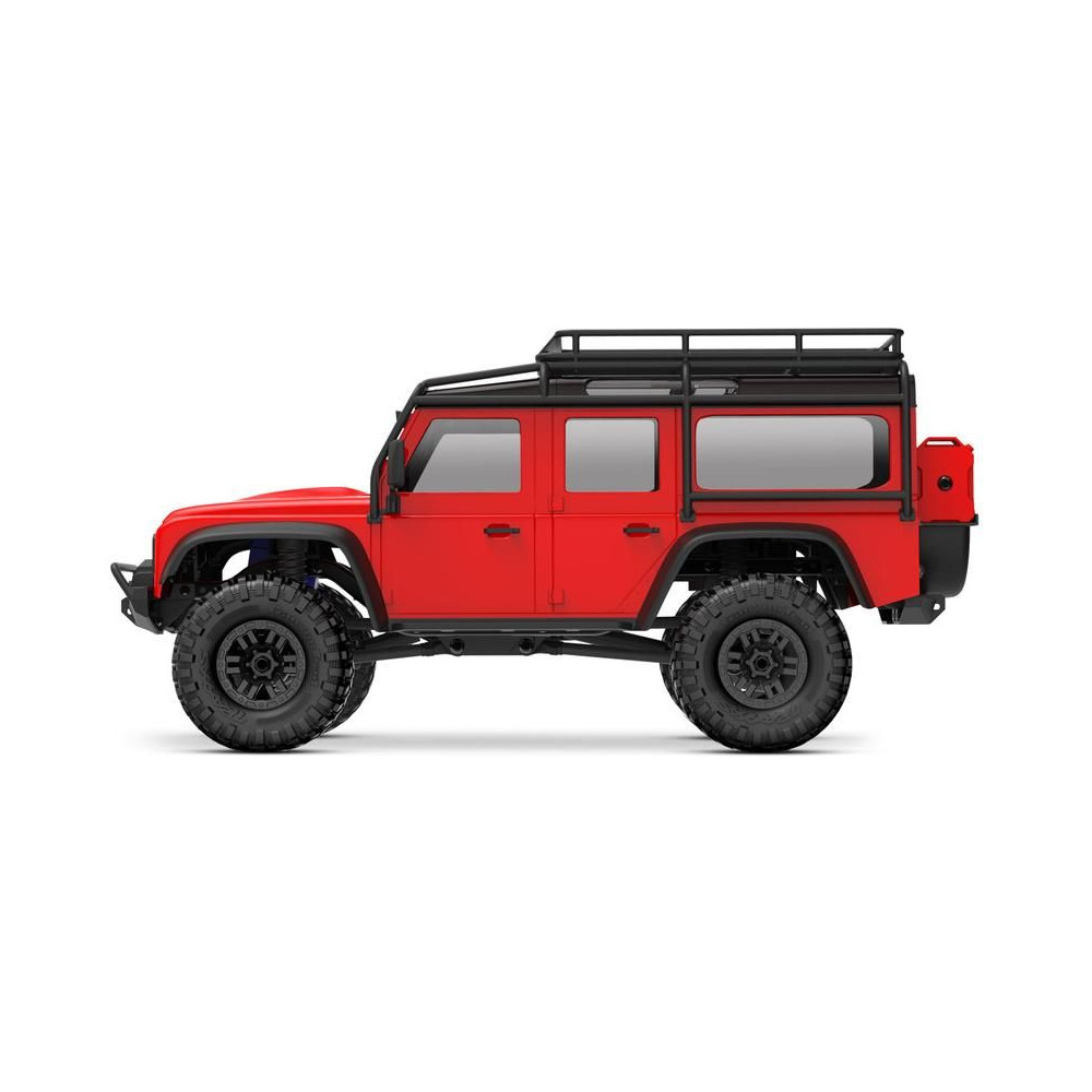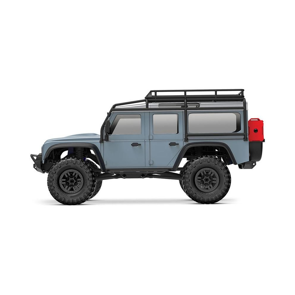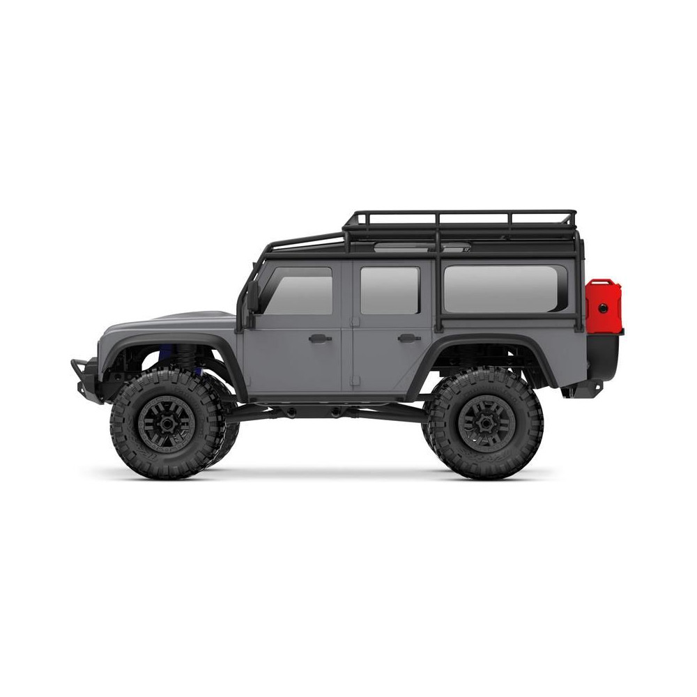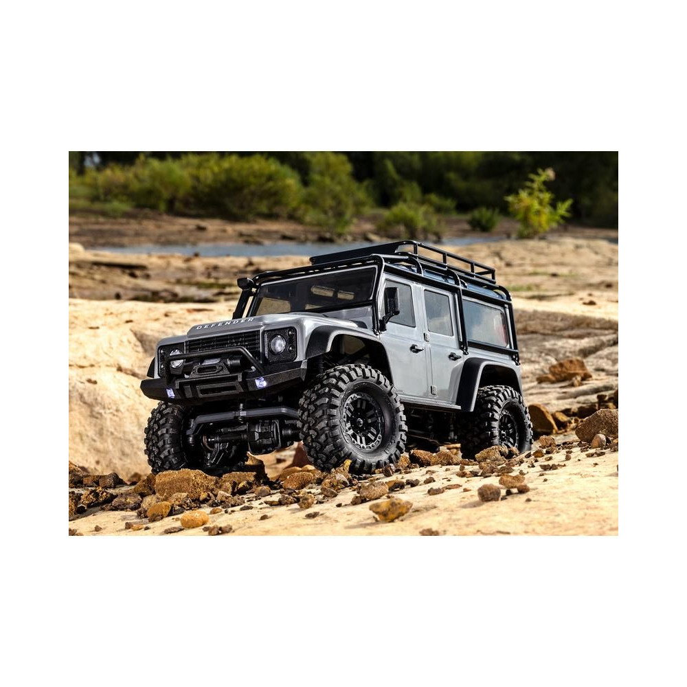 Traxxas TRX-4M Land Rover Defender távirányítású autómodell 1:18 méretarányban, lenyűgöző sokoldalúsággal és képességekkel. Fém alváz 4 pontos felfüggesztéssel, olajos lengéscsillapítókkal, 45°-os fordulási szöggel, licencelt clipless karosszériával, LED világítással a lökhárítóban. 2S LiPo akkumulátorral és USB töltővel.
