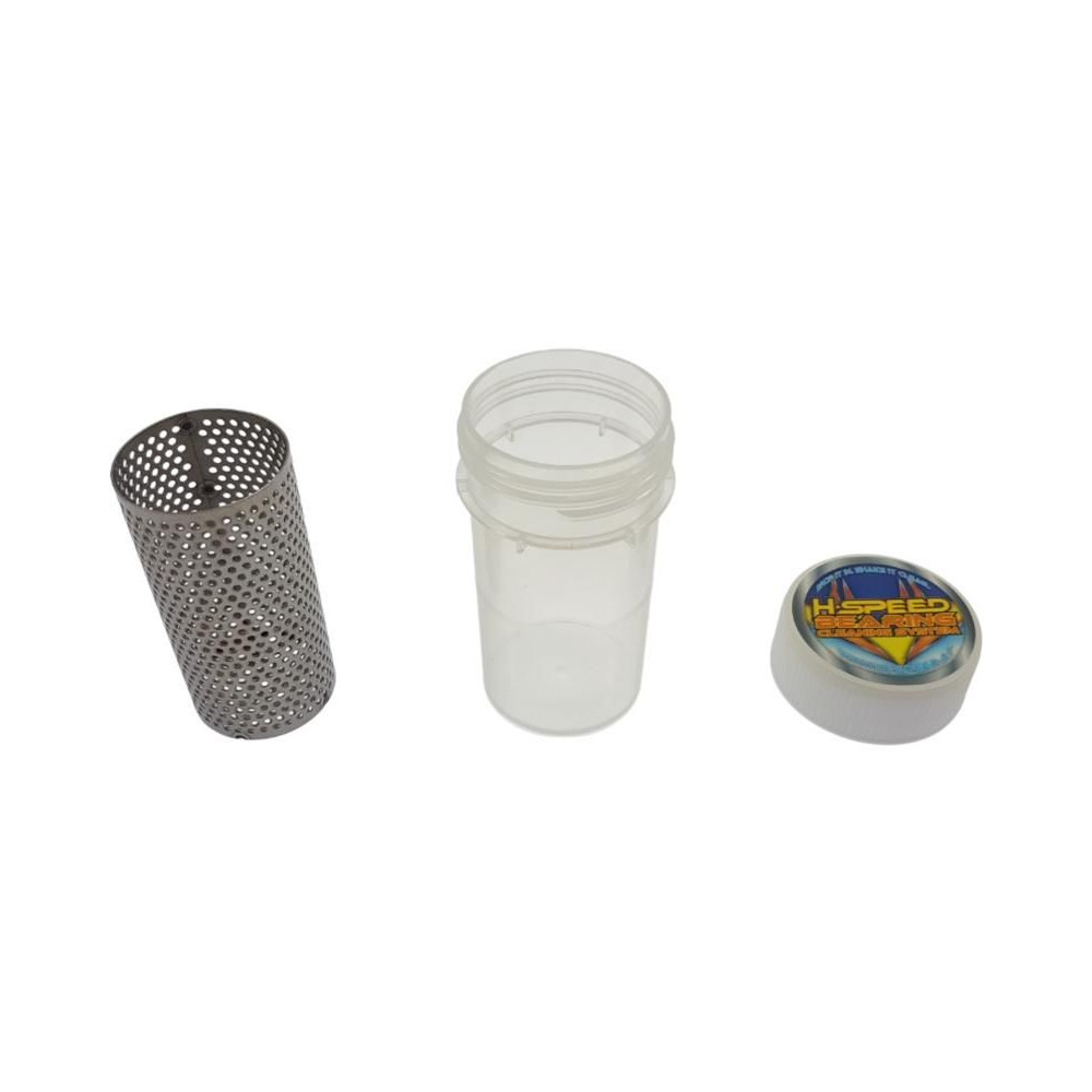 H-Speed csapágytisztító tartály 50 ml. A fémszűrővel ellátott tartály hatékony tisztítást és golyóscsapágy-restaurálást biztosít. Egyszerűen helyezze be a csapágyakat, adja hozzá a tisztítófolyadékot, zárja le a fedelet, alaposan rázza fel - és kész is!