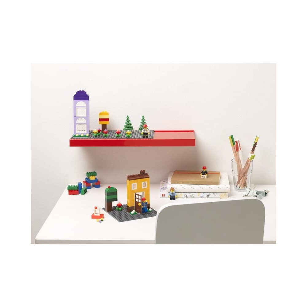 Az eredeti LEGO polc ikonikus színekben díszes helyet biztosít modelljeidnek. Könnyű összeszerelés, kiváló minőségű kidolgozás és LEGO csempék jellemzik a csomagot. Állítsd be épületeidet stílusosan!