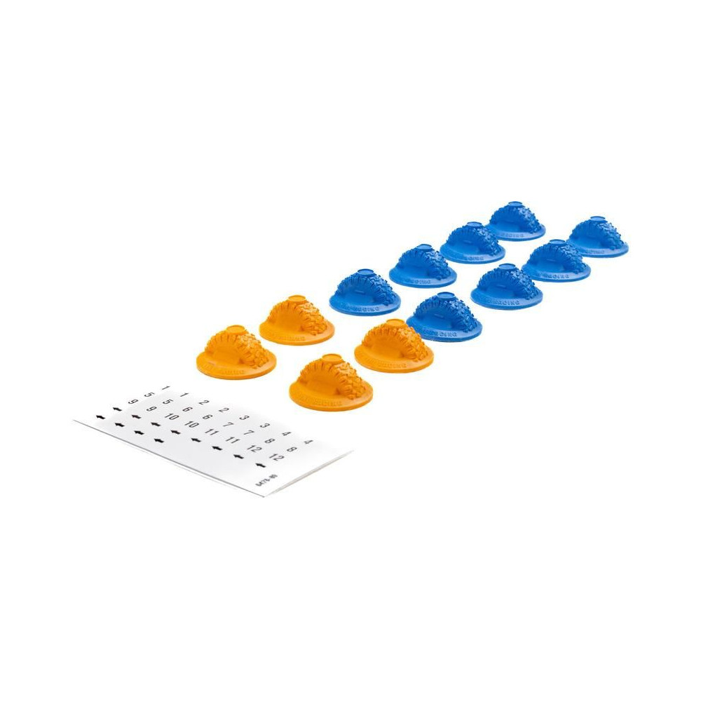 A mellékelt matricalap számokat és irányjelző nyilakat tartalmaz, amelyeket közvetlenül a kapukra kell ragasztani. Világosan jelölje meg a kapuk sorrendjét és irányát, hogy a versenyek szervezettek és tisztességesek legyenek.