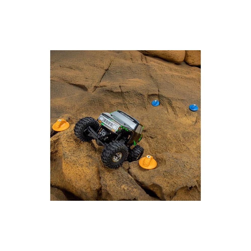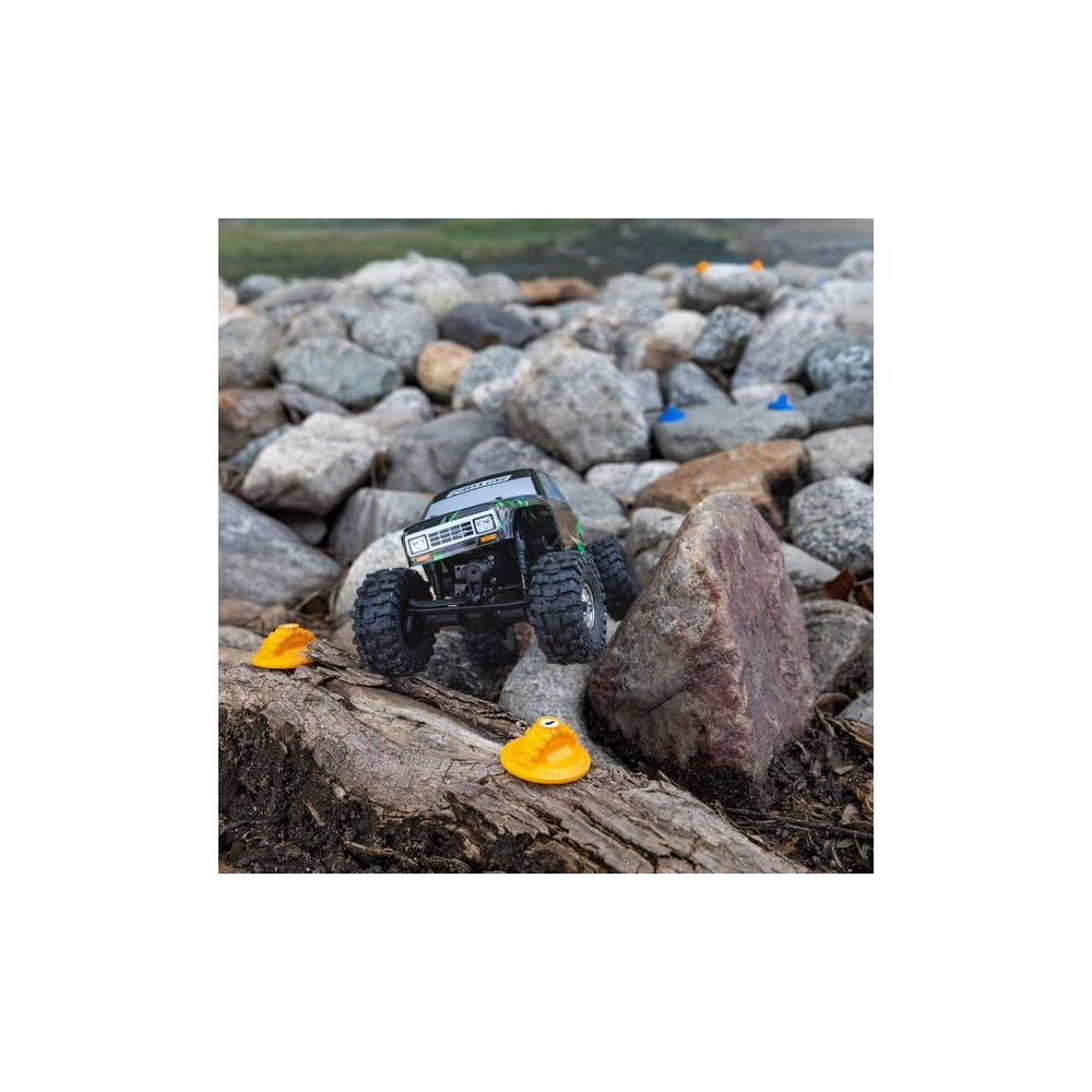 Változtass versenypályává bármilyen terepet 1:30 méretarányú RC modellautóddal (Axial SCX30). Összesen 12 könnyű, gumiabroncs alakú kapu található rajta, amelyen felragasztható a szám és az irány. Matricalap is jár hozzá. A kertben lévő kőhalmoktól a nappalikon, garázsokon át az irodai asztalokig, a Pro-Line útburkolati jelek lehetővé teszik, hogy bárhol létrehozz próbautakat.