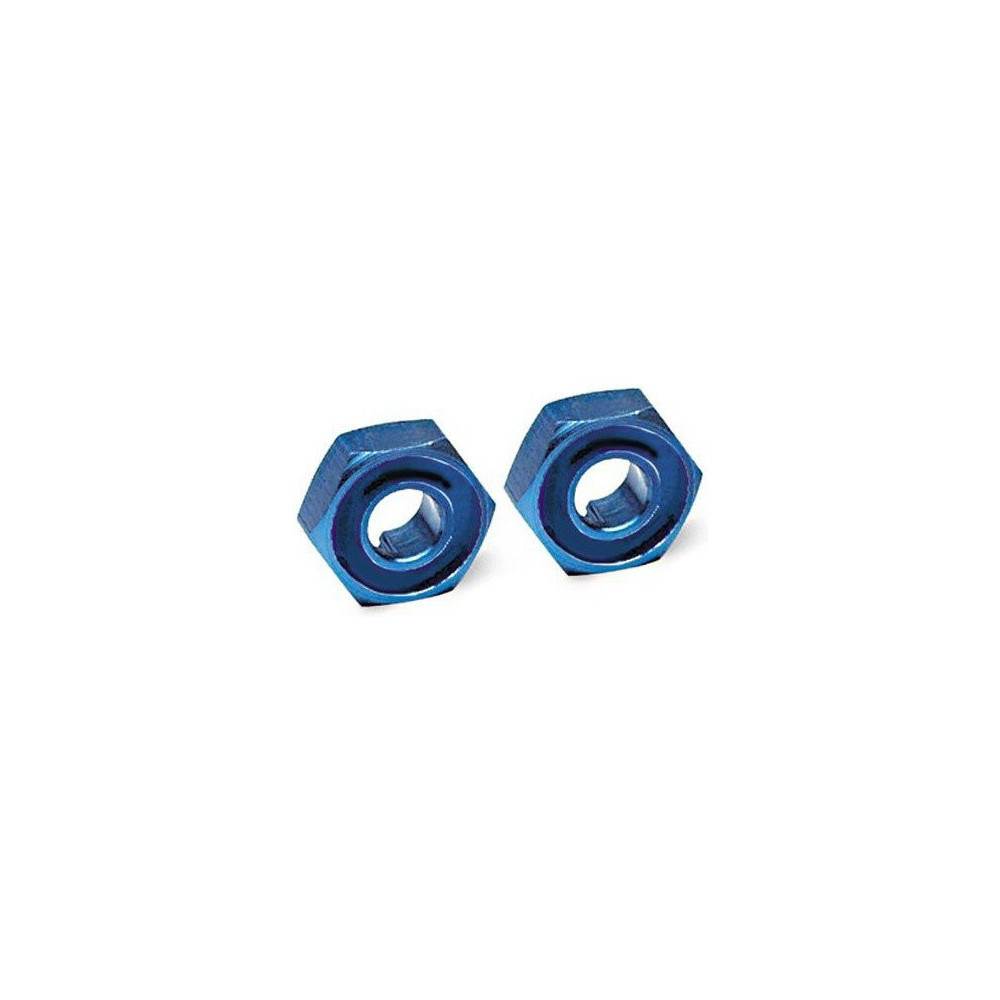 Alumínium kék eloxált kerékhatszög, 12 mm-es, 5 mm átmérőjű tengelyre.
