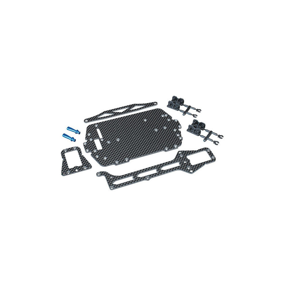 A Traxxas szénszálas átalakító készlet a LaTrax Rally és Teton RC autók alvázalkatrészeinek cseréjére szolgál.