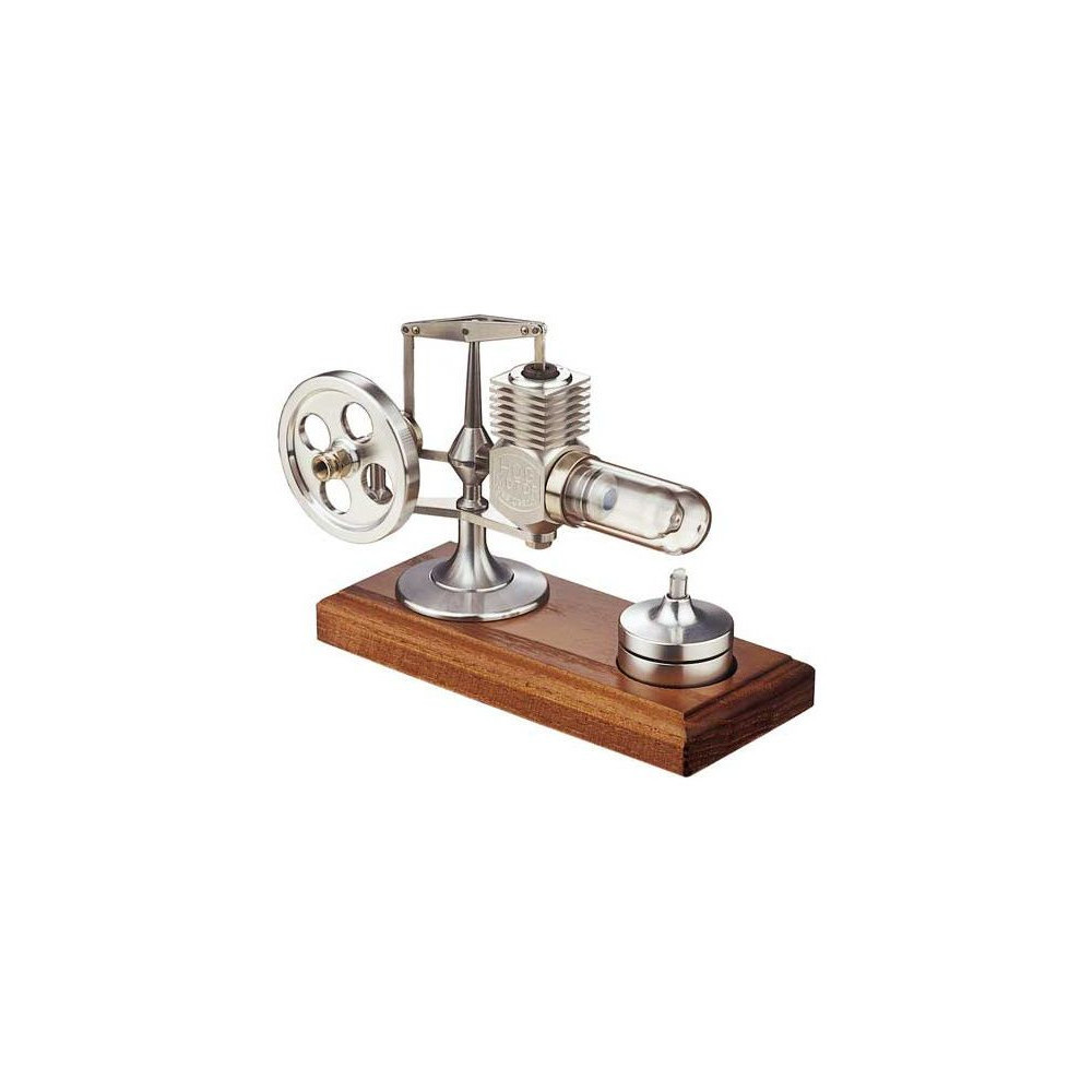 Beta típusú Stirlingmotor, Krick-konstrukció Stirlingmotor alumíniumból összeszerelve. A dugattyú és a nyomócsapágy speciális, önkenő anyagból készült. Ez karbantartásmentességet és hosszú élettartamot jelent. Az üzemanyag denaturált alkohol, hosszú üzemidő. Csiszolt alumíniumból készült. Teljes hossz 155mm, szélesség 60mm, magasság 105mm.