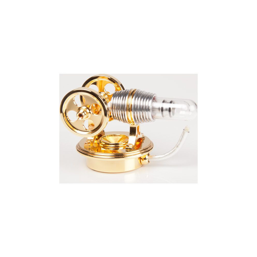 Krick Motor Stirling Twin arany összeszerelve. A dugattyú és a dugattyúcsapágy speciális, önkenő anyagból készült. Ez karbantartásmentességet és hosszú élettartamot jelent. Az üzemanyag denaturált alkohol, hosszú üzemidő. Aranyozott sárgarézből készült. Teljes hossz 155mm, szélesség 60mm, magasság 105mm.