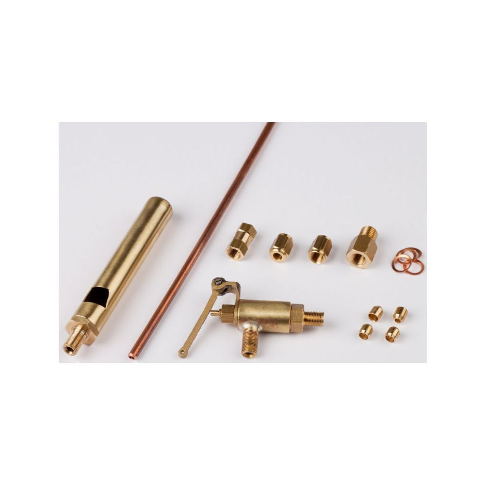 Krick síp szeleppel. Készlet a gőzmozdonyod valósághű síppal való hangosításához. Tartalmazza a sípot, a vezérlőszelepet és a csatlakozóalkatrész-készletet. Tartozékok a Krick gőzmozdonyokhoz.